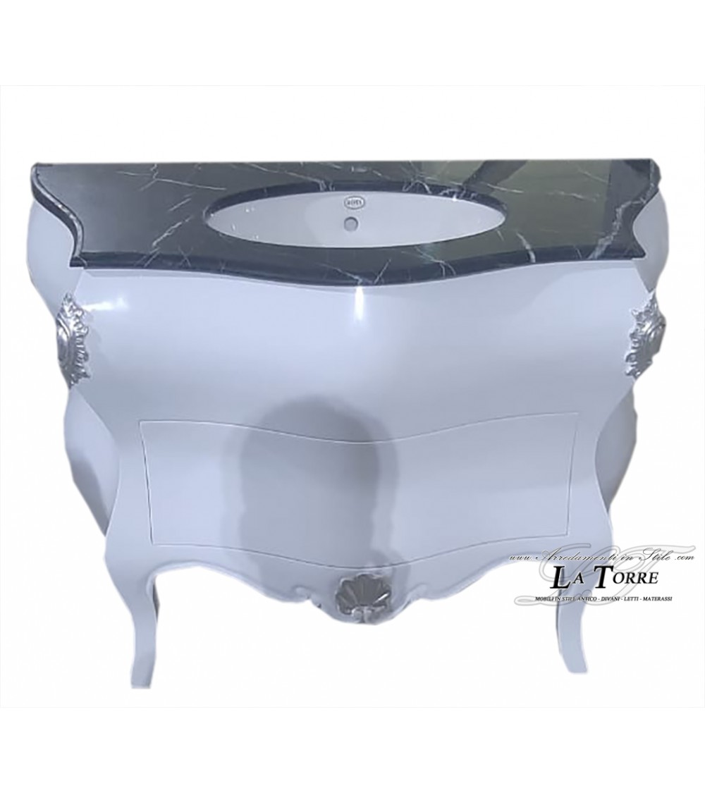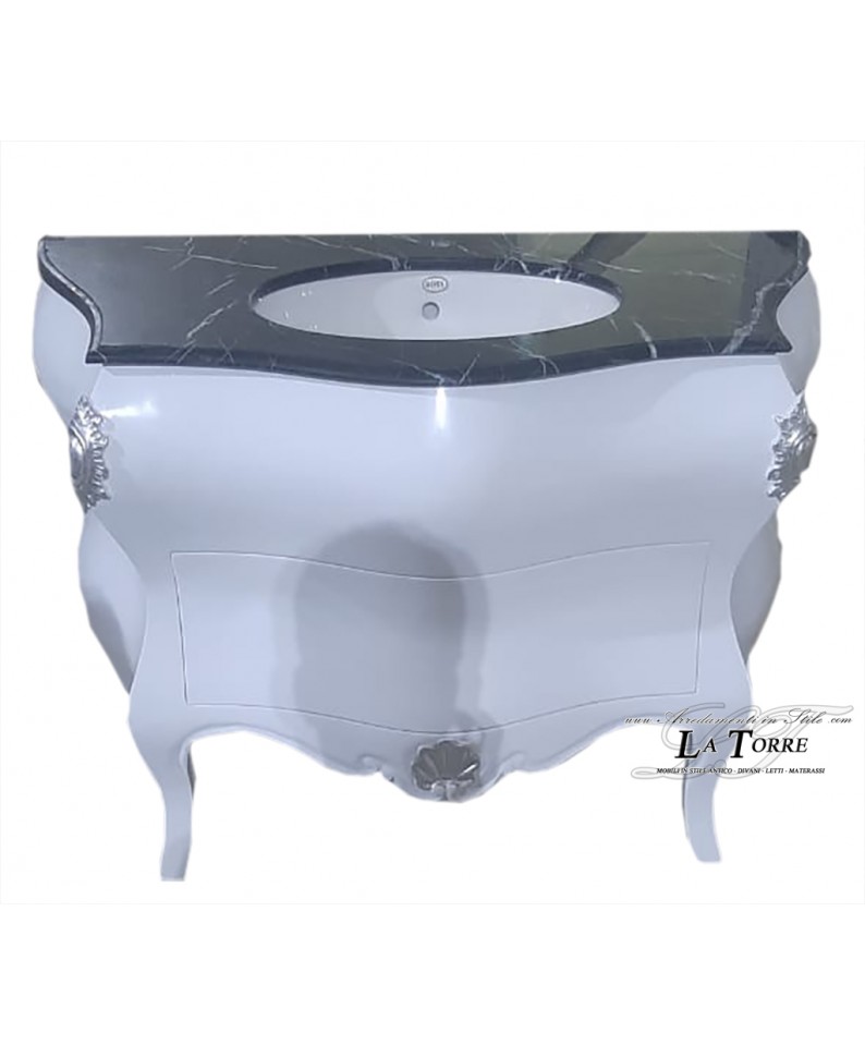Mobile bagno Luigi XV bianco argento marmo nero bombato barocco moderno Mi02