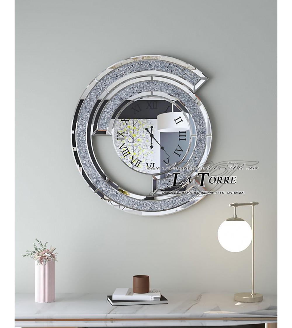 Orologio da Parete Moderno Rotondo con Cristalli – Design Geometrico Specchiato Elegante Ø70 cm B65F argento