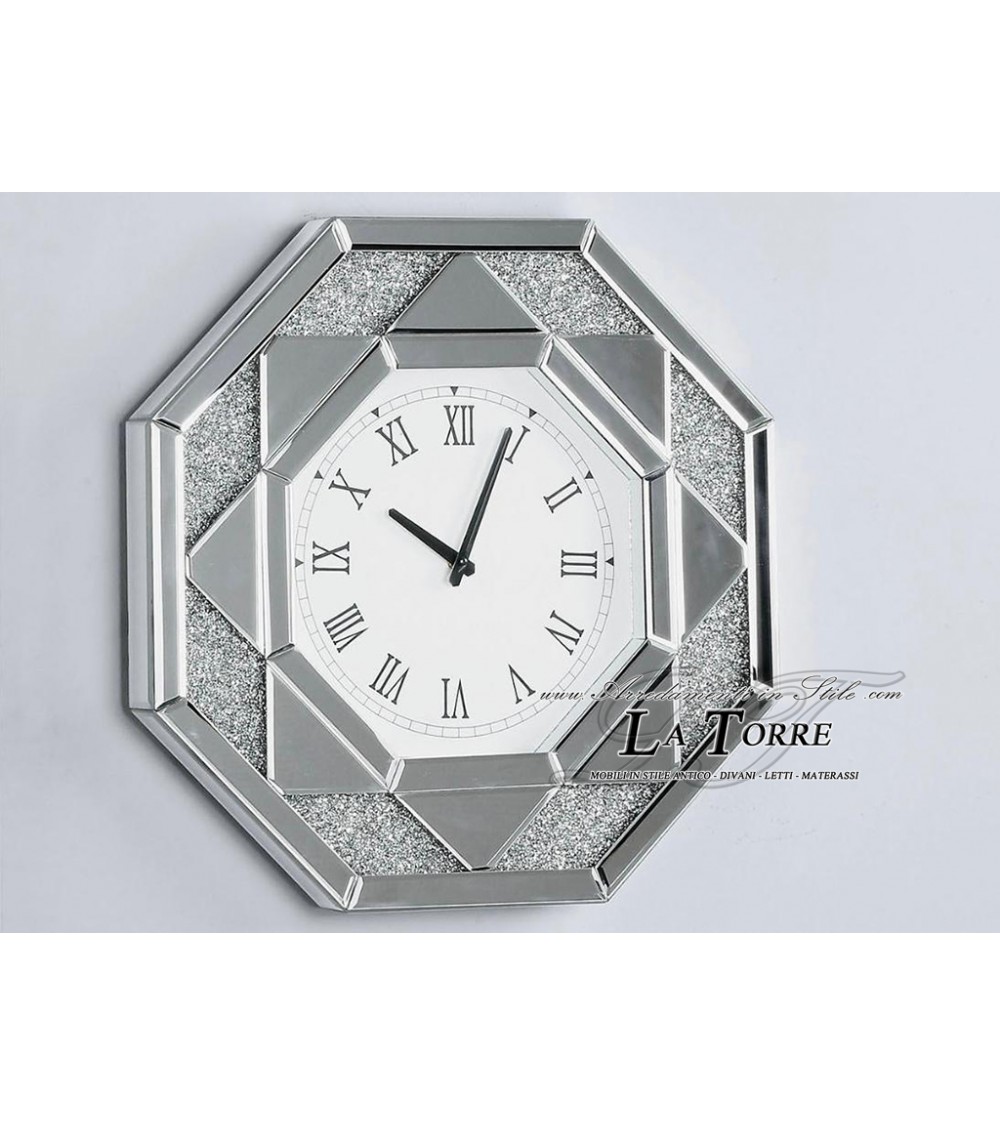 Orologio da Parete Moderno Ottagonale con Cristalli Swarovski – Design Specchiato di Lusso 60 cm C98