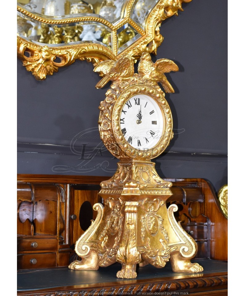 Orologio Barocco da Tavolo con colombe stile antico oro francese clock R71