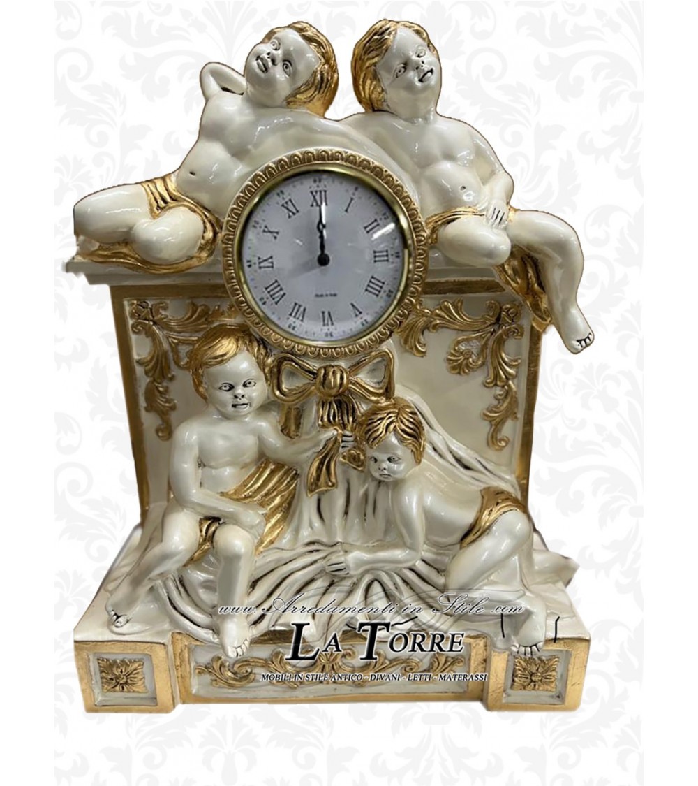 Orologio grande H57 da tavolo in ceramica con putto silik avorio e oro stile barocco PR59