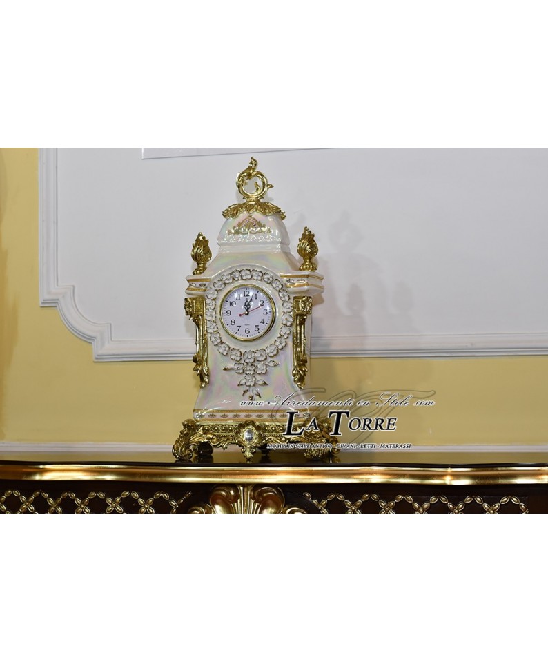 Orologio da tavolo in porcellana bianca e foglia oro stile barocco P26