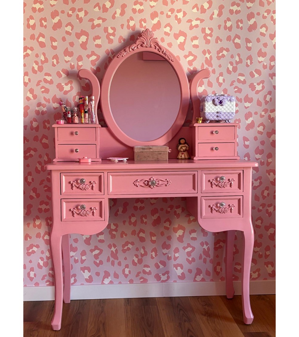 Toeletta pettiniera specchiera Pouf stile barocco ballerina rosa Na40
