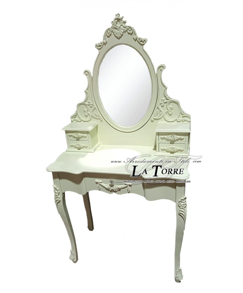 Toeletta pettiniera specchiera stile barocco ballerina bianco panna Na46