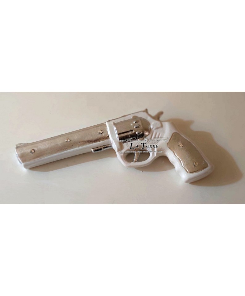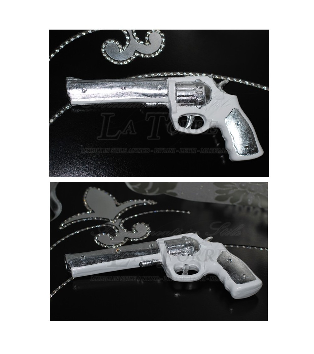 Arma pistola a tamburo Revolver in ceramica Argento e Bianco con swarovski PR33