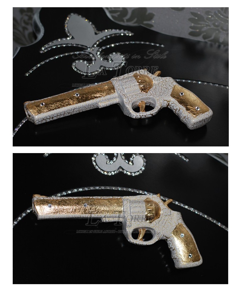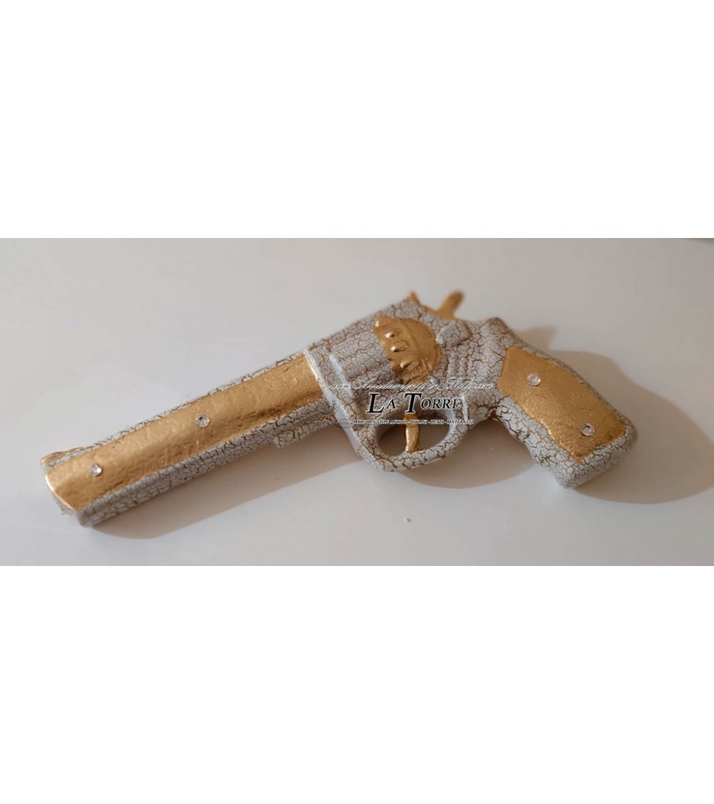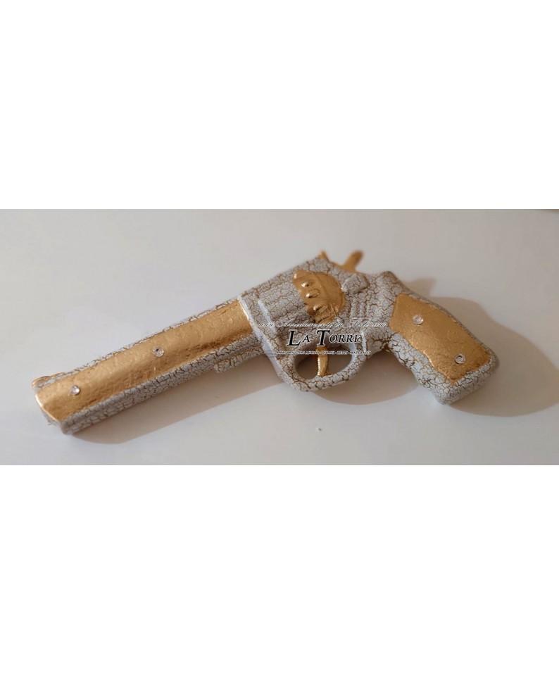 Arma pistola a tamburo Revolver in ceramica cracklè oro con swarovski PR33