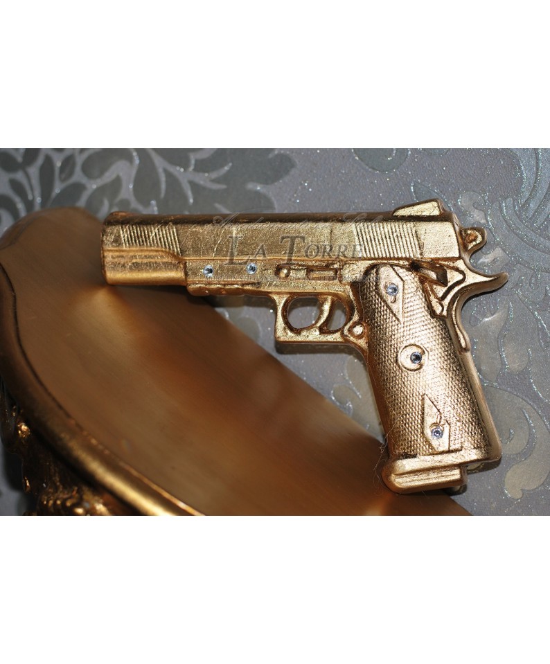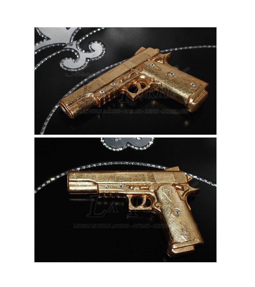 Arma pistola Beretta in ceramica foglia oro swarovski 9x21 soprammobile PR33