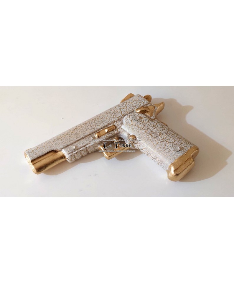 Arma pistola Beretta in ceramica cracklè e oro swarovski 9x21 soprammobile PR33