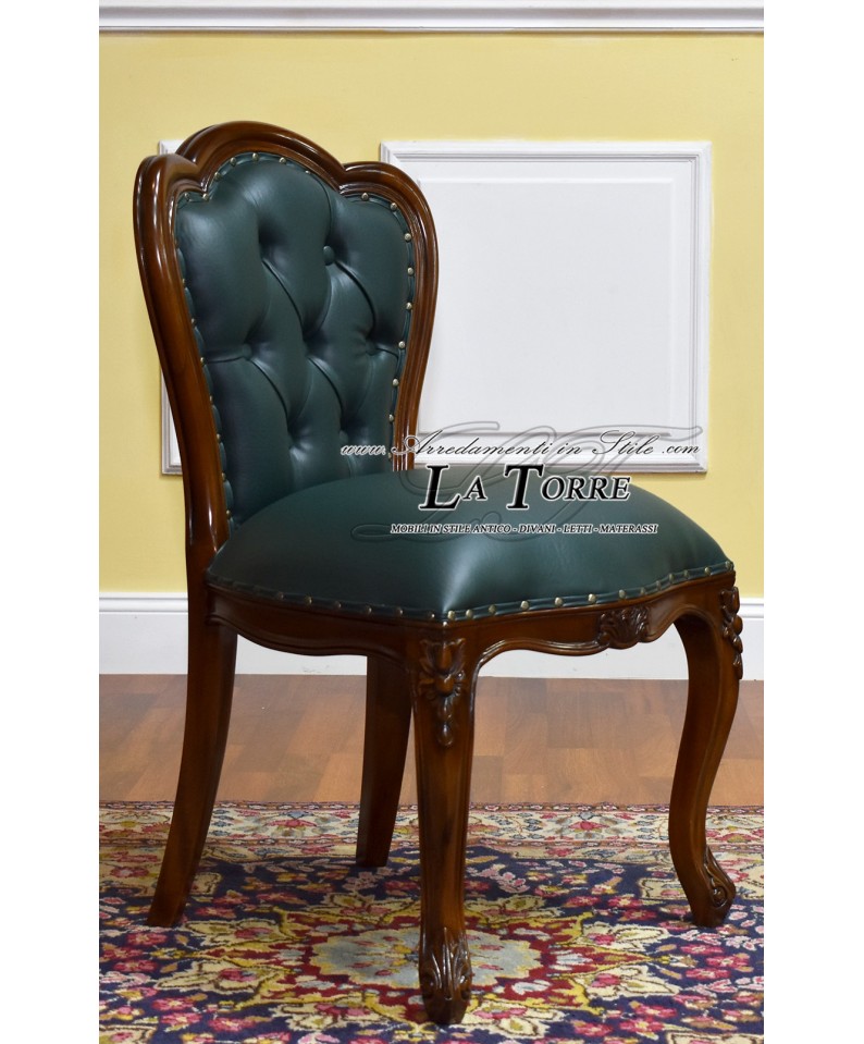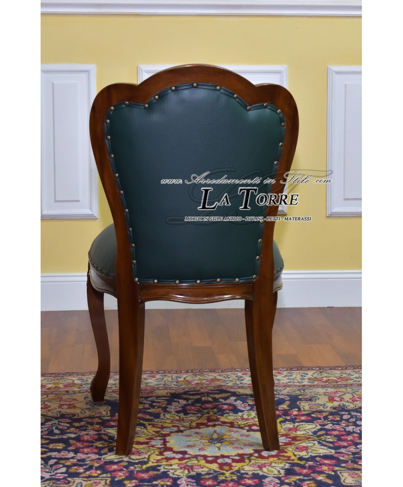 Poltrona Josephine stile Inglese sedia ministeriale presidenziale noce ecopelle verde NA27