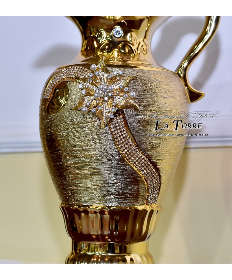 Porcellana Swarovski Vaso anfora Portafiori brocca con manici oro Po17