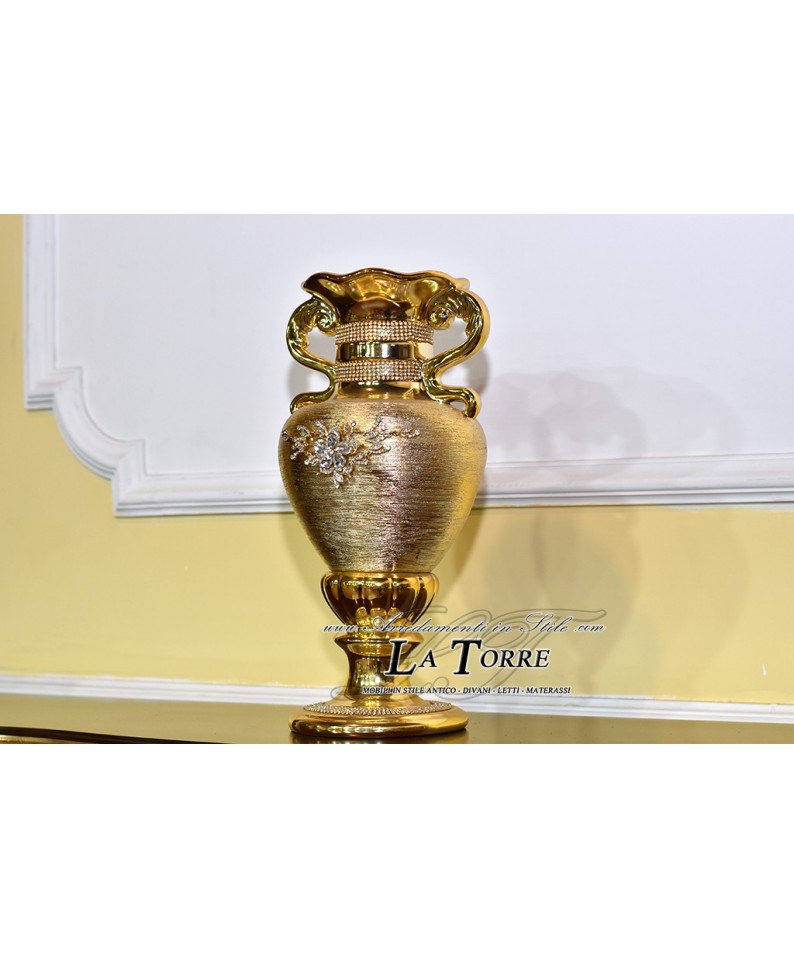 Porcellana Swarovski Vaso anfora Portafiori coppa con manici oro Po18