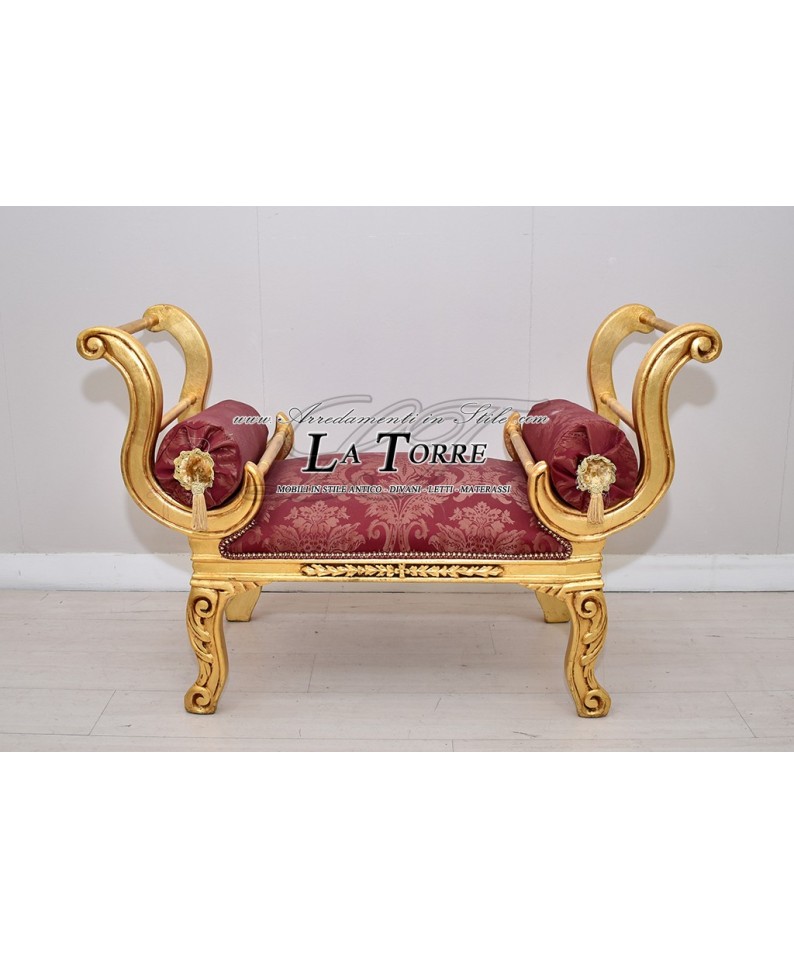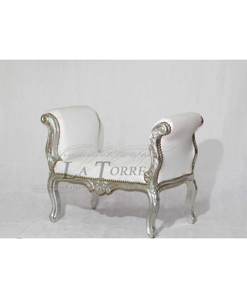 Dormeuse panca francese divano panchetta legno argento ecopelle bianca k86