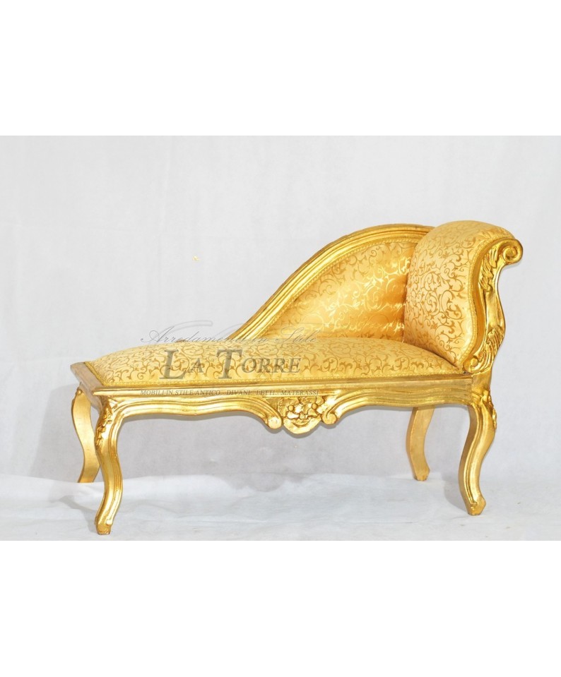 Dormeuse panca francese in stile Luigi XV , con struttura interamente realizzata in legno, rivestita da una lucida finitura in foglia argento, che le conferisce un aspetto prezioso e contemporaneo. La fascia perimetrale sotto la seduta è finemente intagliata con motivi a ricciolo e floreali, aggiungendo un tocco di eleganza . La seduta e i braccioli sono imbottiti in ecopelle bianca , rifiniti da borchie argentate. Questo pezzo d'arredo è ideale per aggiungere un tocco di lusso e stile a un salotto, una camera da letto padronale o un ingresso.