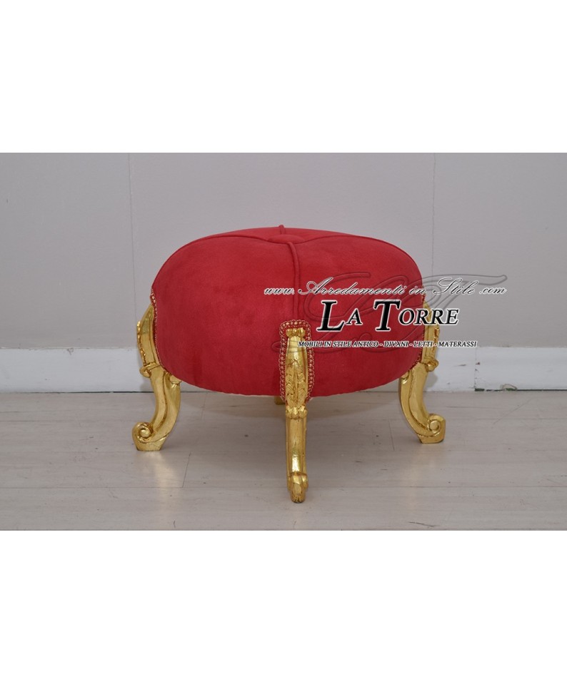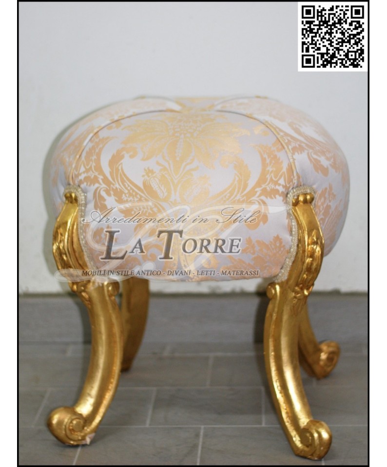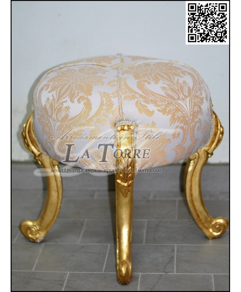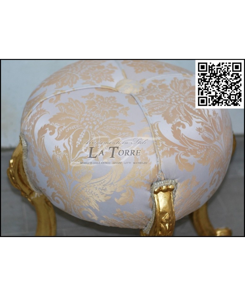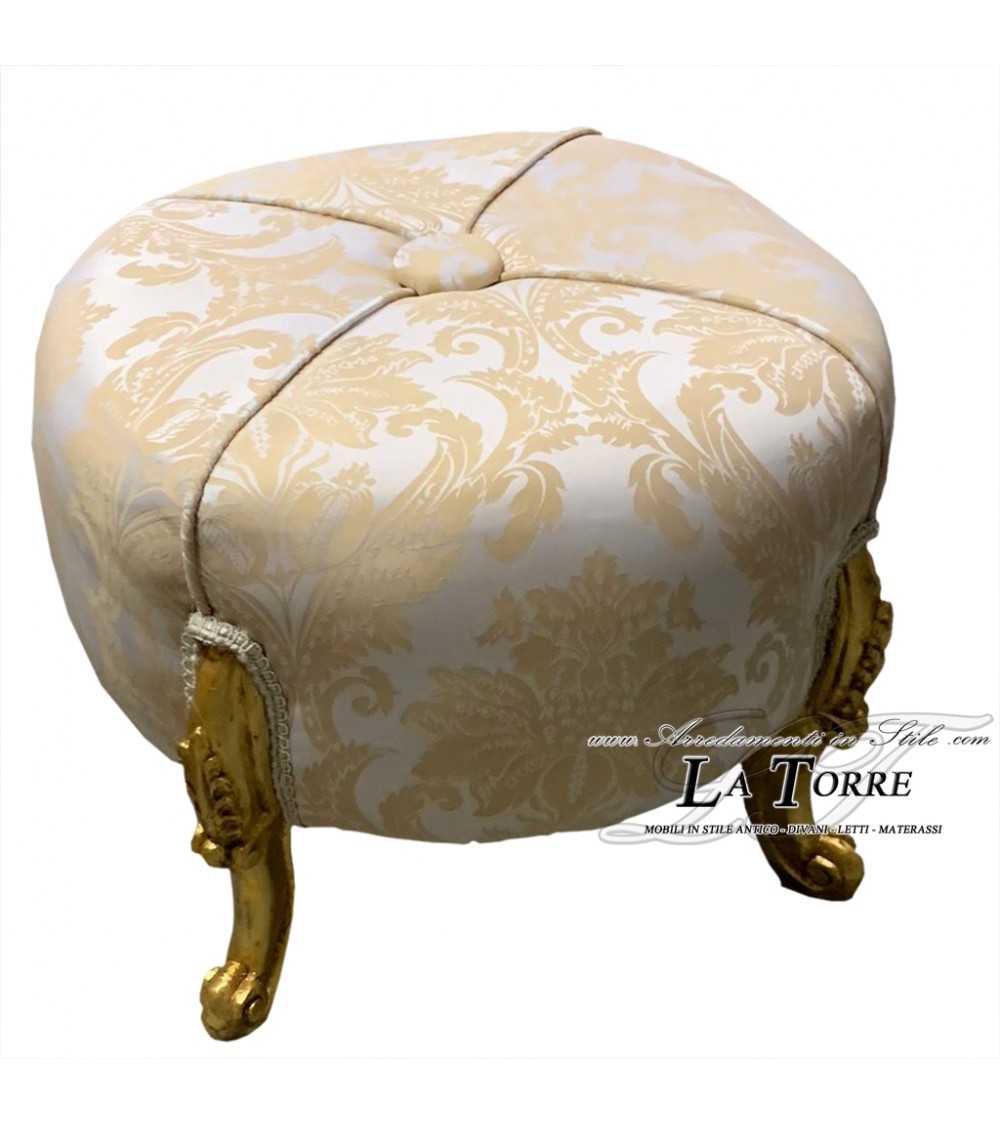 Pouf Eneas rotondo Luigi Xv barocco oro tessuto damascato avorio swarovski AL6064