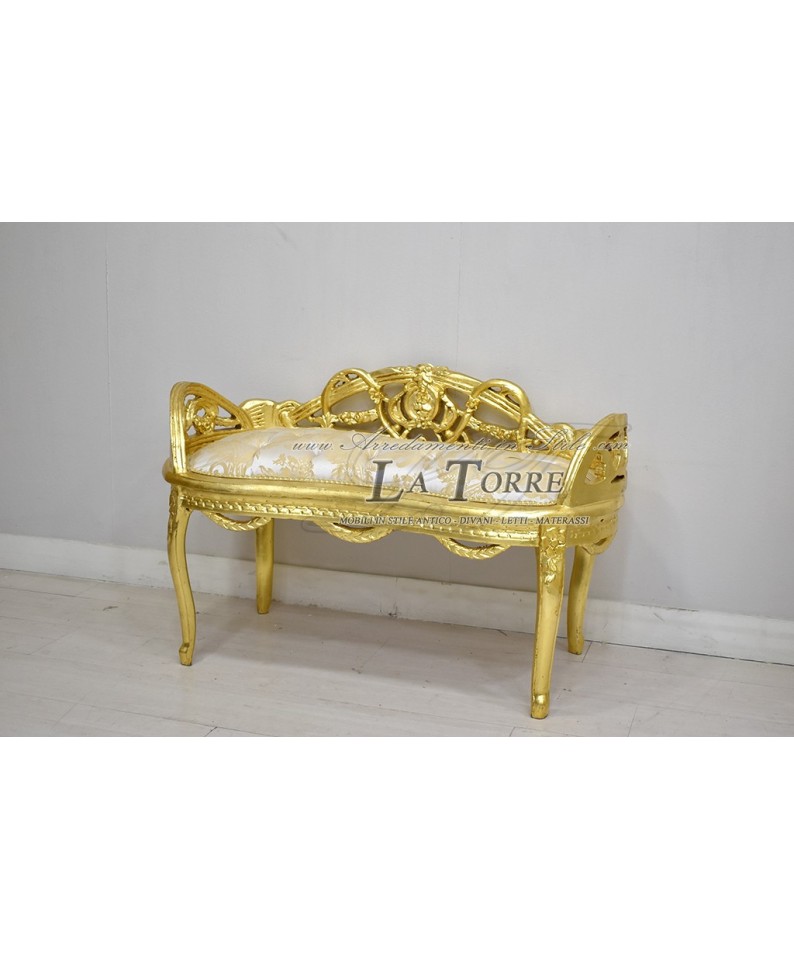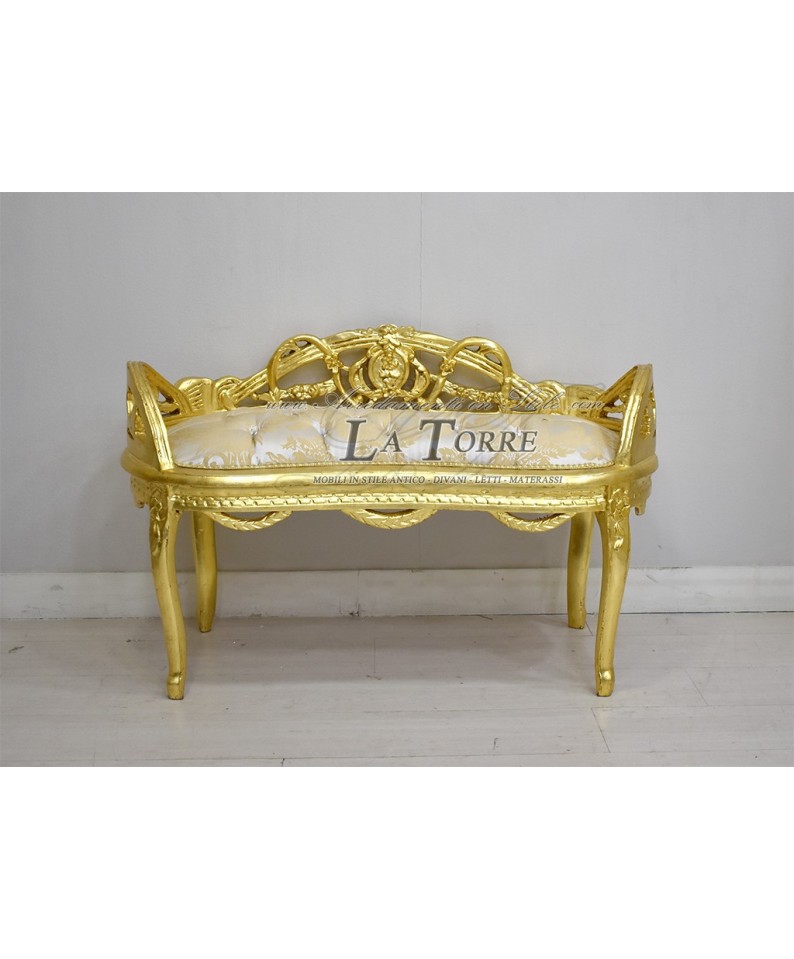Dormeuse panca ovale divano panchetta 100 cm oro tessuto damascato giglio AL3640
