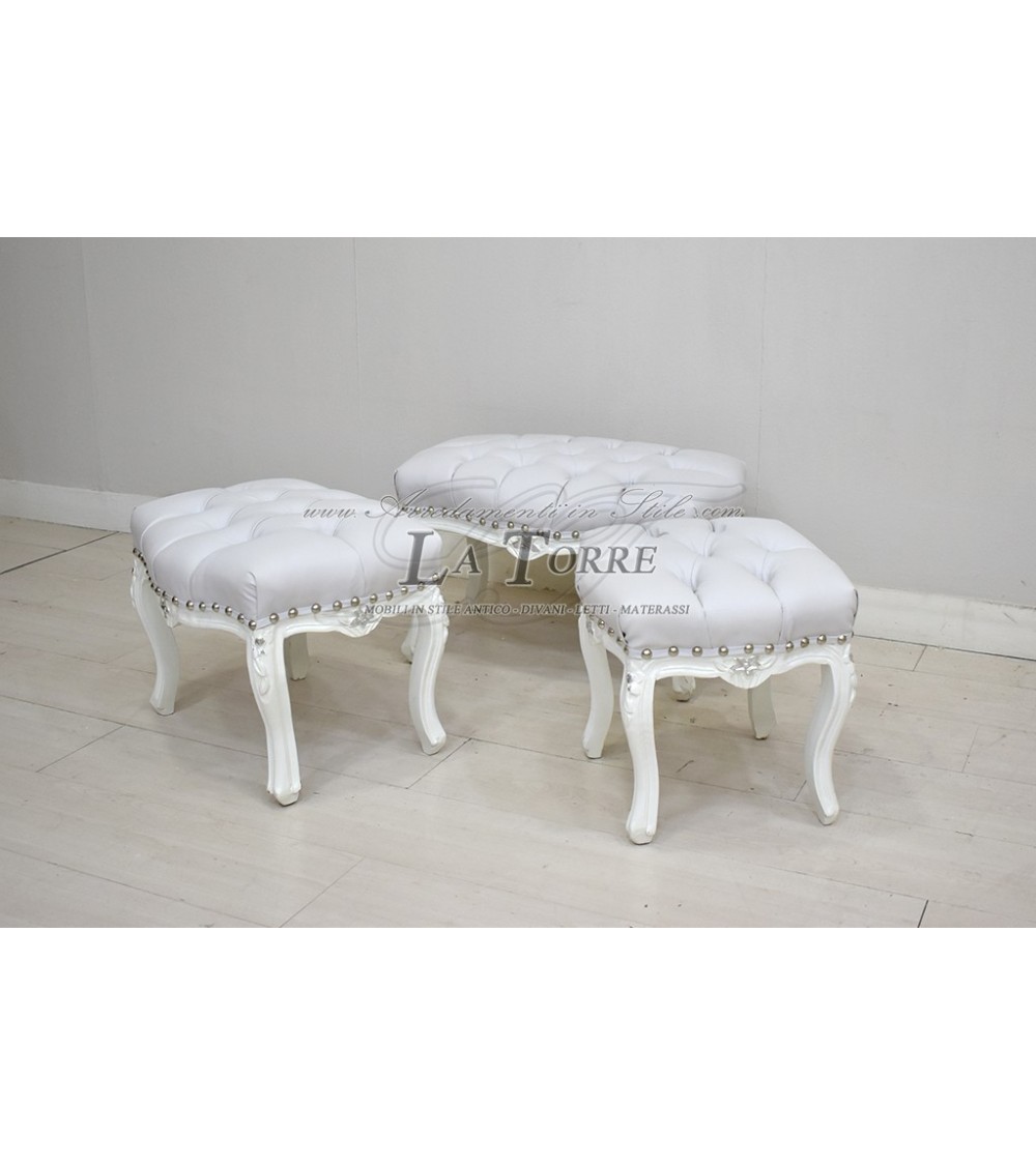 Tris di Pouf Luigi XV stile barocco ecopelle bianca Swarovski AL7778