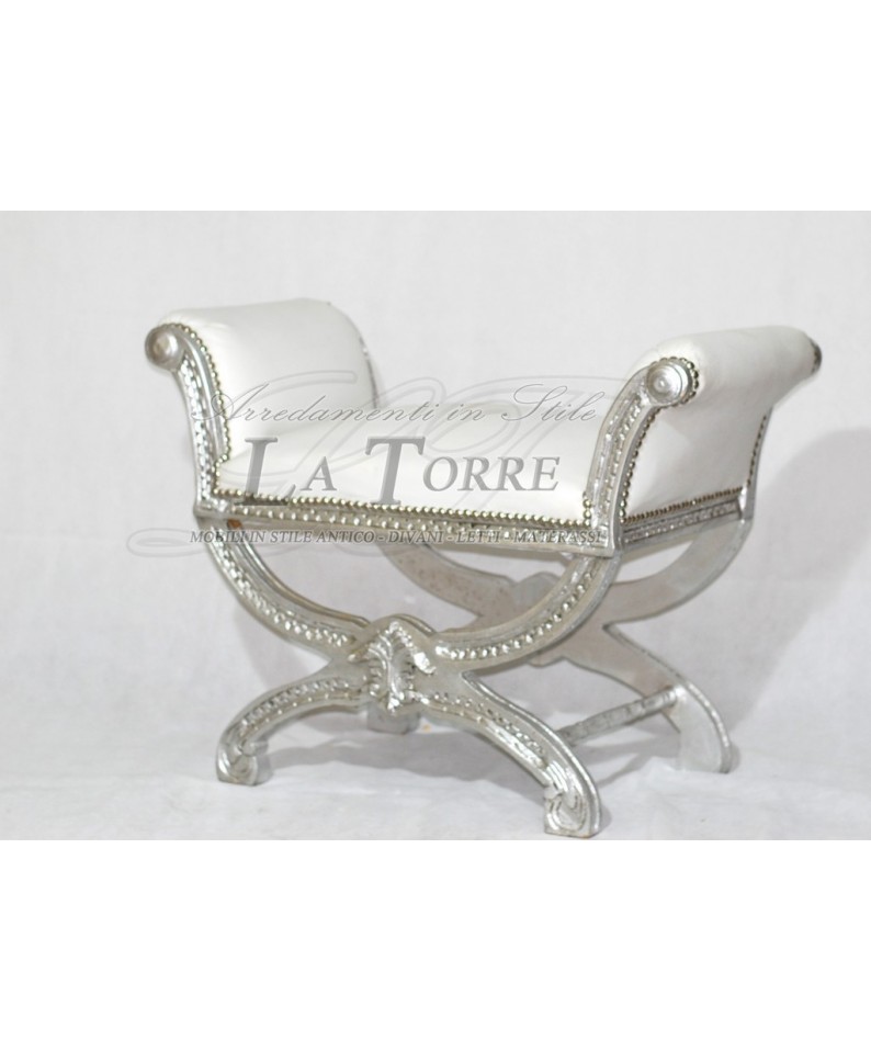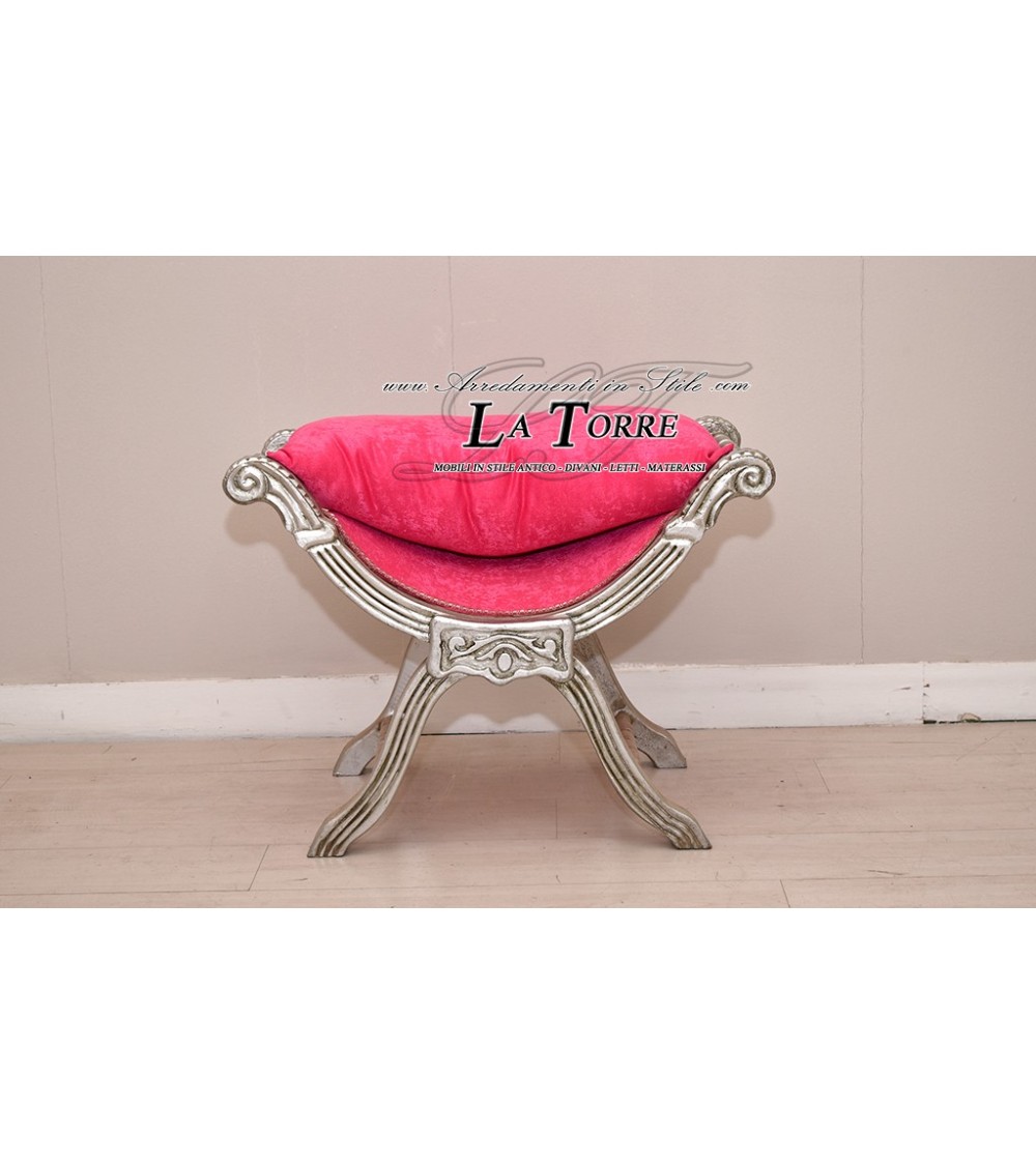 Savonarola Panca panchetta Luigi XV sgabello argento velluto fucsia Ar1561