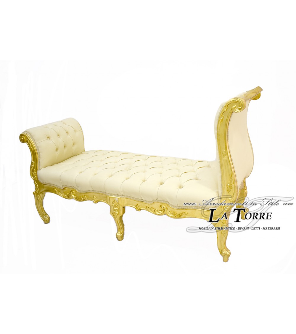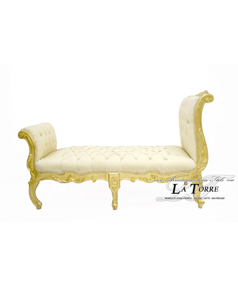Dormeuse panca Cleopatra Luigi XV stile Barocco divano panchetta legno foglia oro ecopelle avorio LT3014