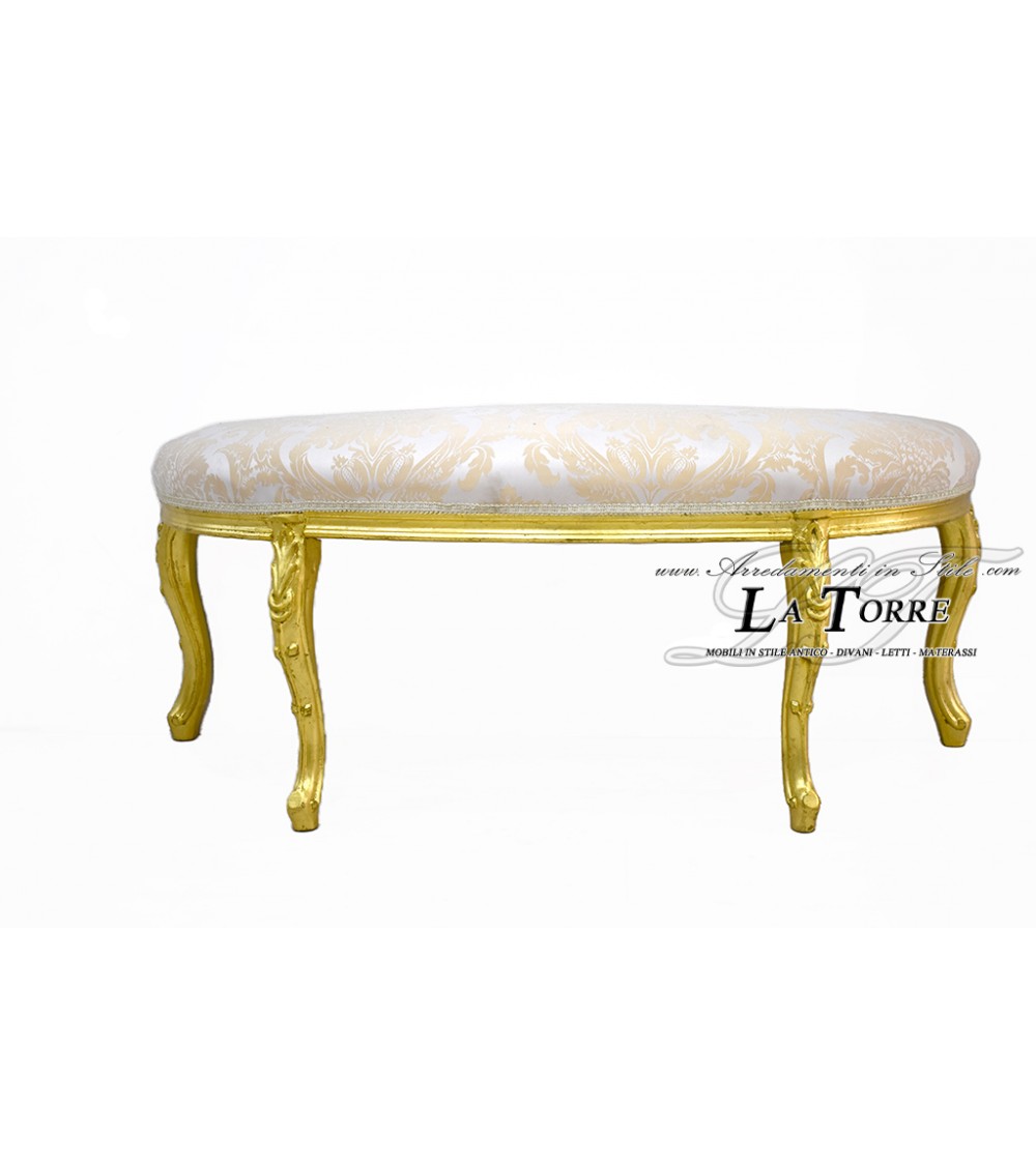 Panca mezzaluna barocco Luigi XV giglio fiorentino tessuto oro avorio LT3030