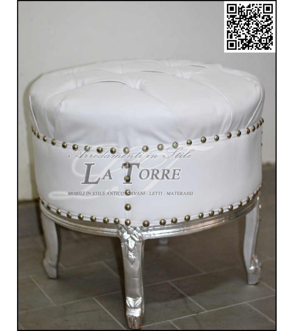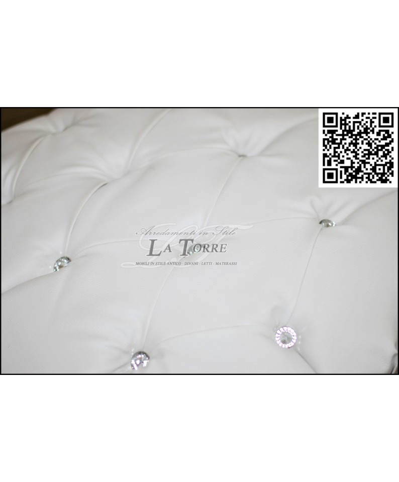 Pouf barocco moderno Luigi XV argento swarovski ecopelle bianca AL5355