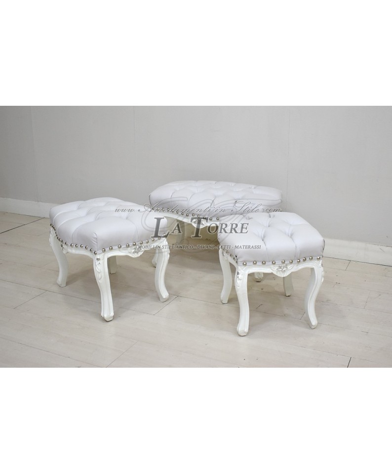 Elegante pouf rotondo in stile barocco, ideale per aggiungere un tocco di raffinatezza a qualsiasi ambiente. La seduta è generosamente imbottita e rivestito in un morbido tessuto damascato in oro, con una lavorazione capitonné che ne esalta la morbidezza. Il bordo superiore e inferiore del pouf sono decorati con borchie metalliche dorate, che creano un contrasto cromatico e un dettaglio lussuoso. Le gambe curve e intagliate, tipiche dello stile barocco, sono rifinite in un'elegante foglia oro, completando il design sofisticato e versatile.