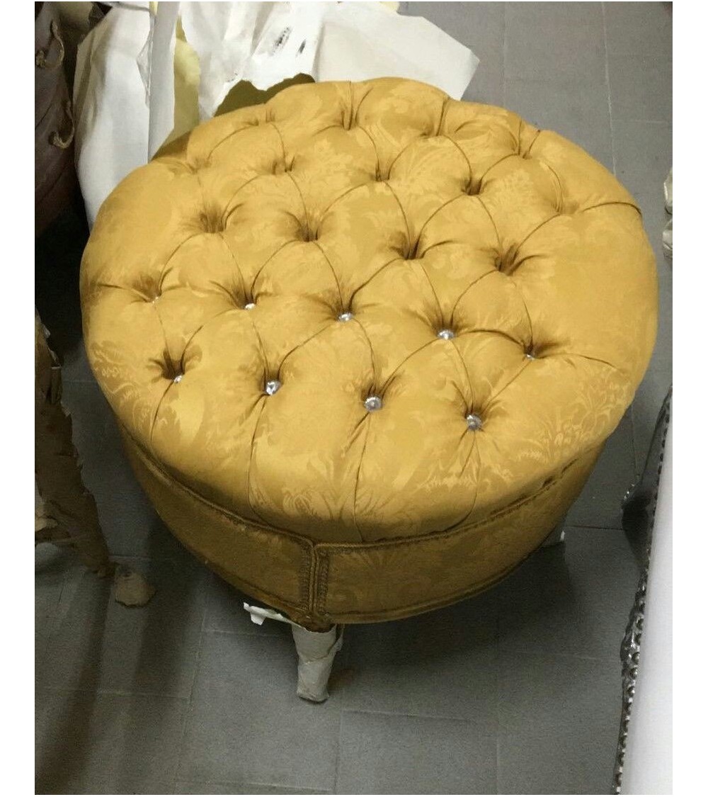 Pouf rotondo barocco capitonné swarovski foglia oro tessuto damascato AL5355