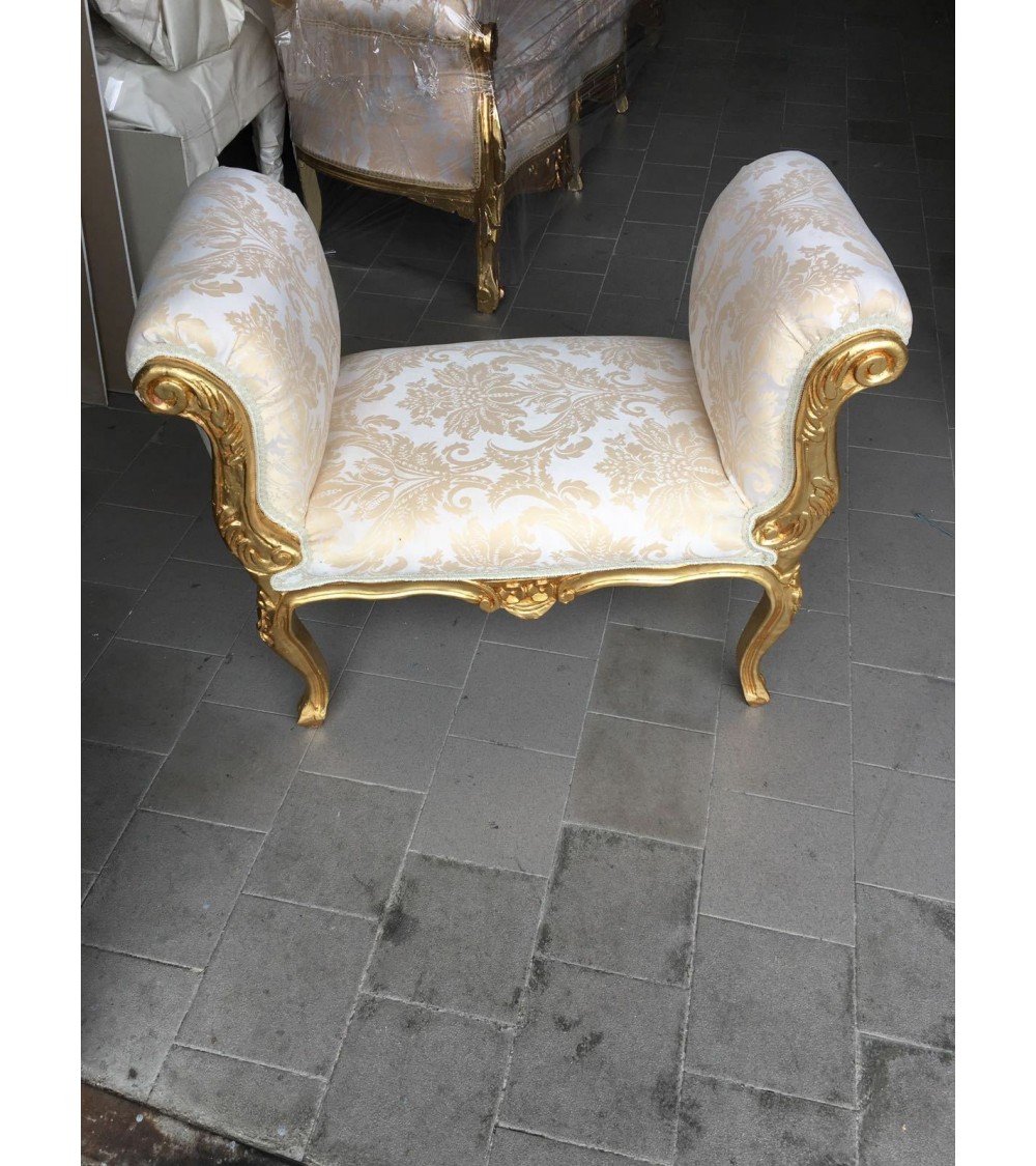 Dormeuse panca francese divano panchetta legno oro tessuto damascato champagne k86
