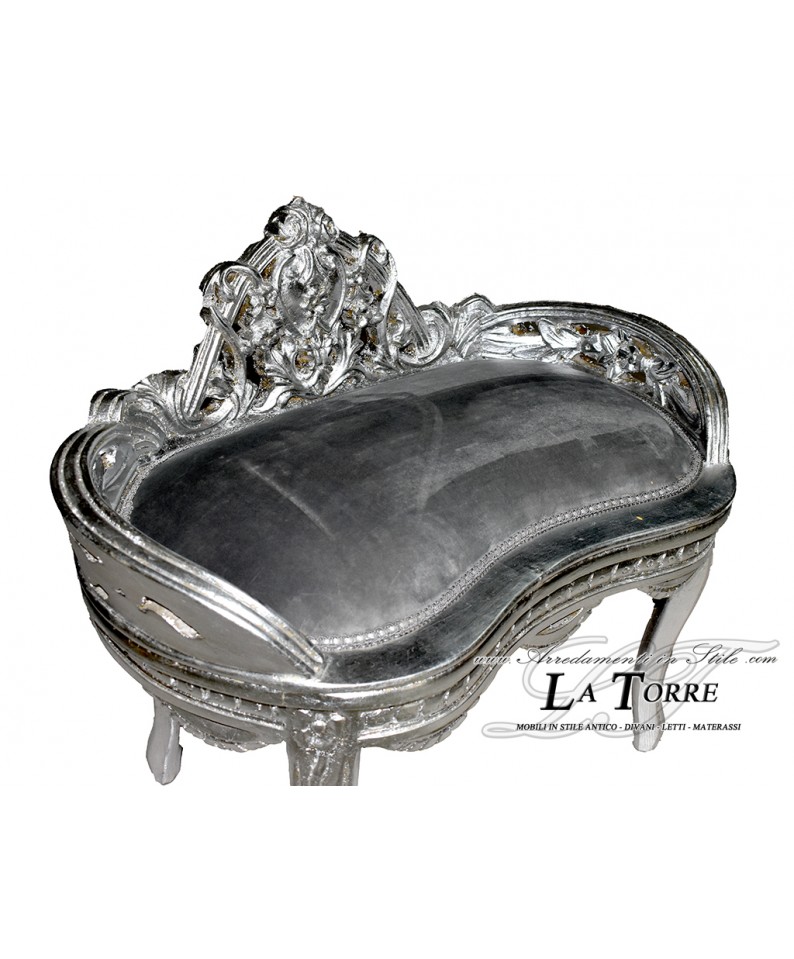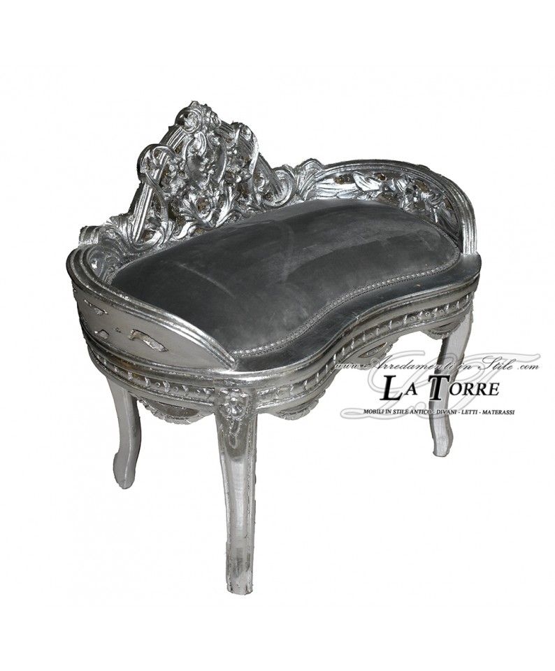 Panca panchetta in stile barocco struttura argento vellutino grigio AR1563