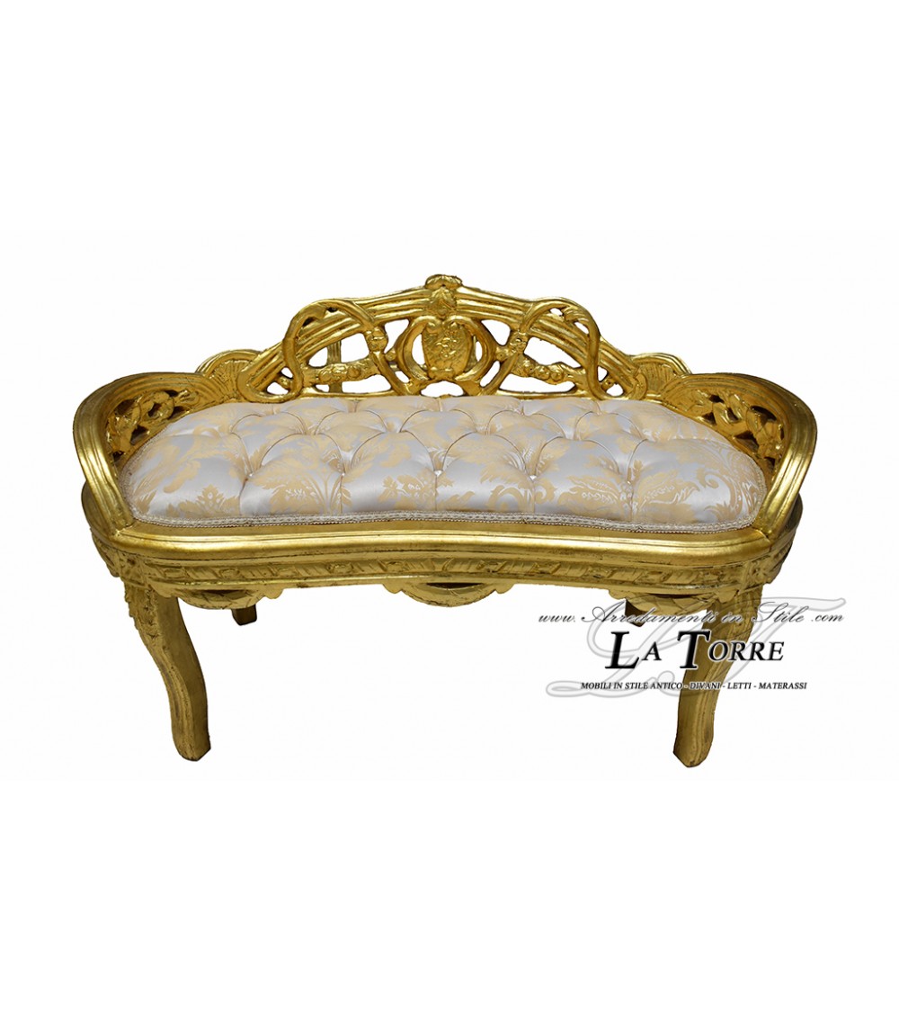 Panca panchetta in stile barocco struttura oro tessuto damascato avorio AR1563