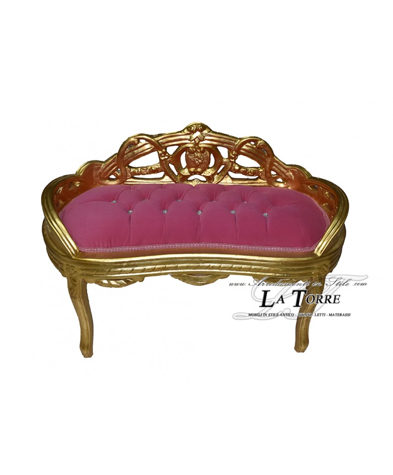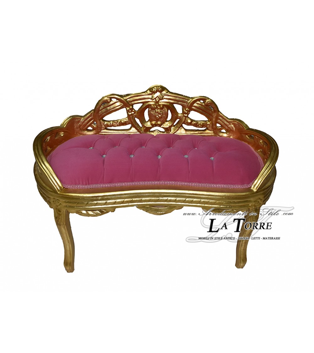 Panca panchetta in stile barocco struttura oro tessuto vellutino vinaccio AR1563