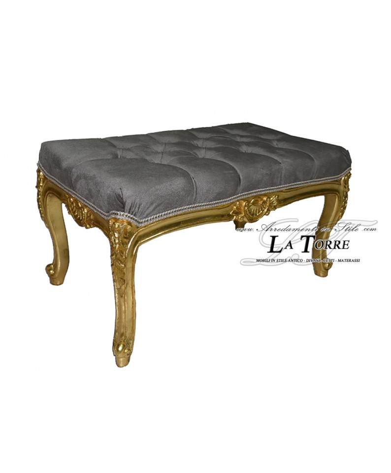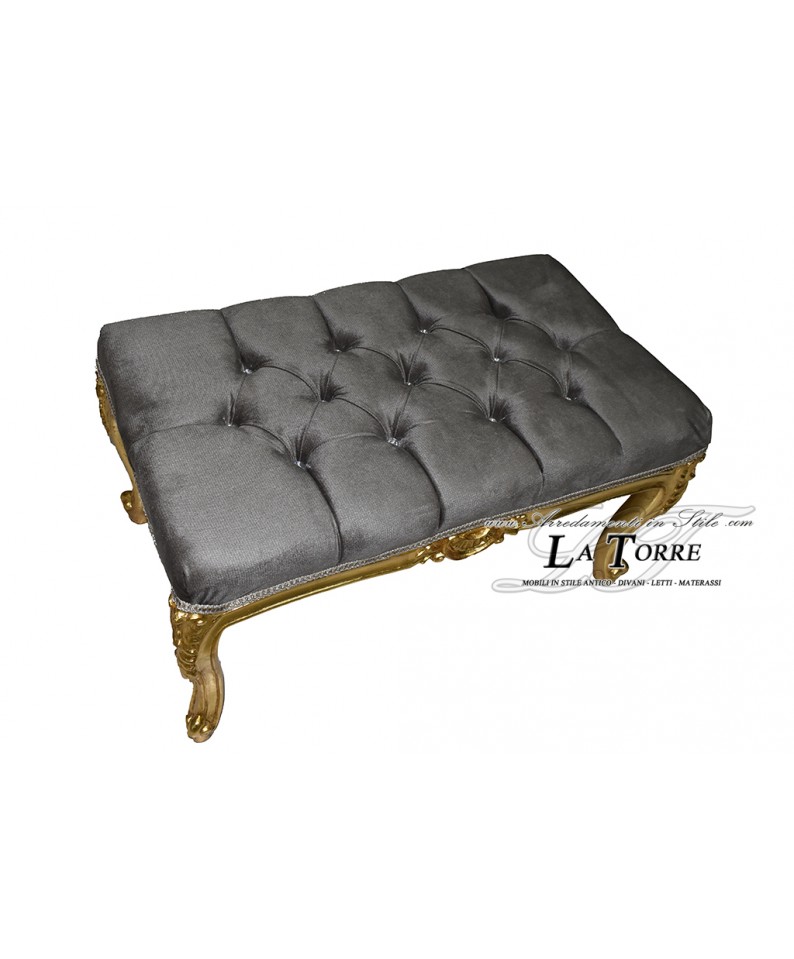 Panca rettangolare barocco capitonné struttura foglia oro vellutino grigio LT3024