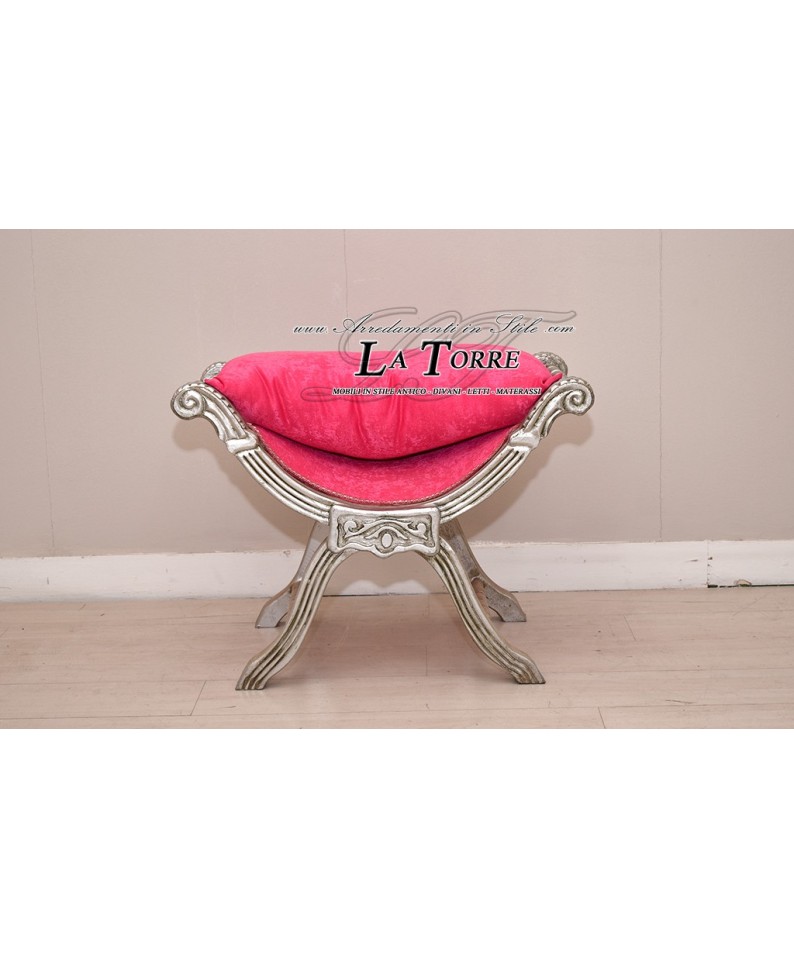 Panca Classica Barocca in Legno Argento e Tessuto Avorio – Personalizzabile nei Colori AZ39B