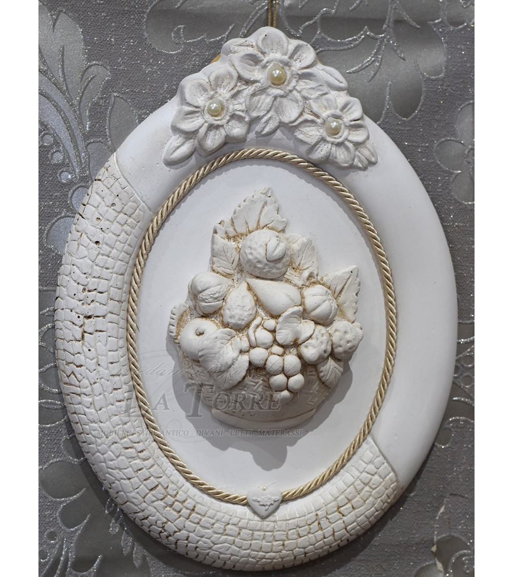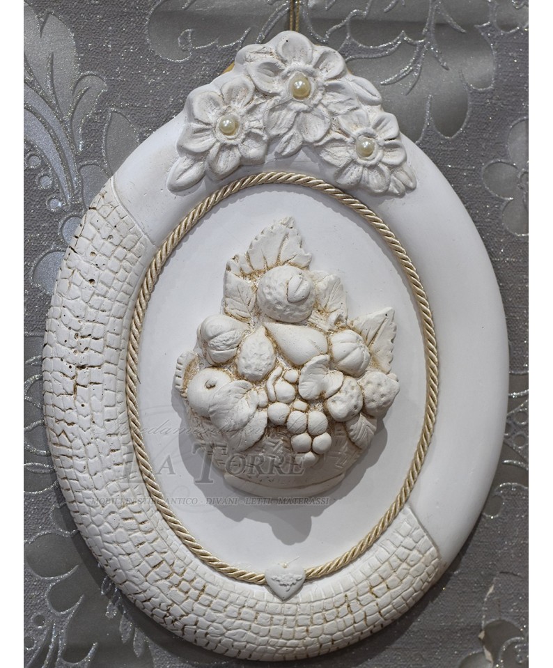 Quadretto ovale capezzale barocco gesso da cucina ceramica cesto con frutta