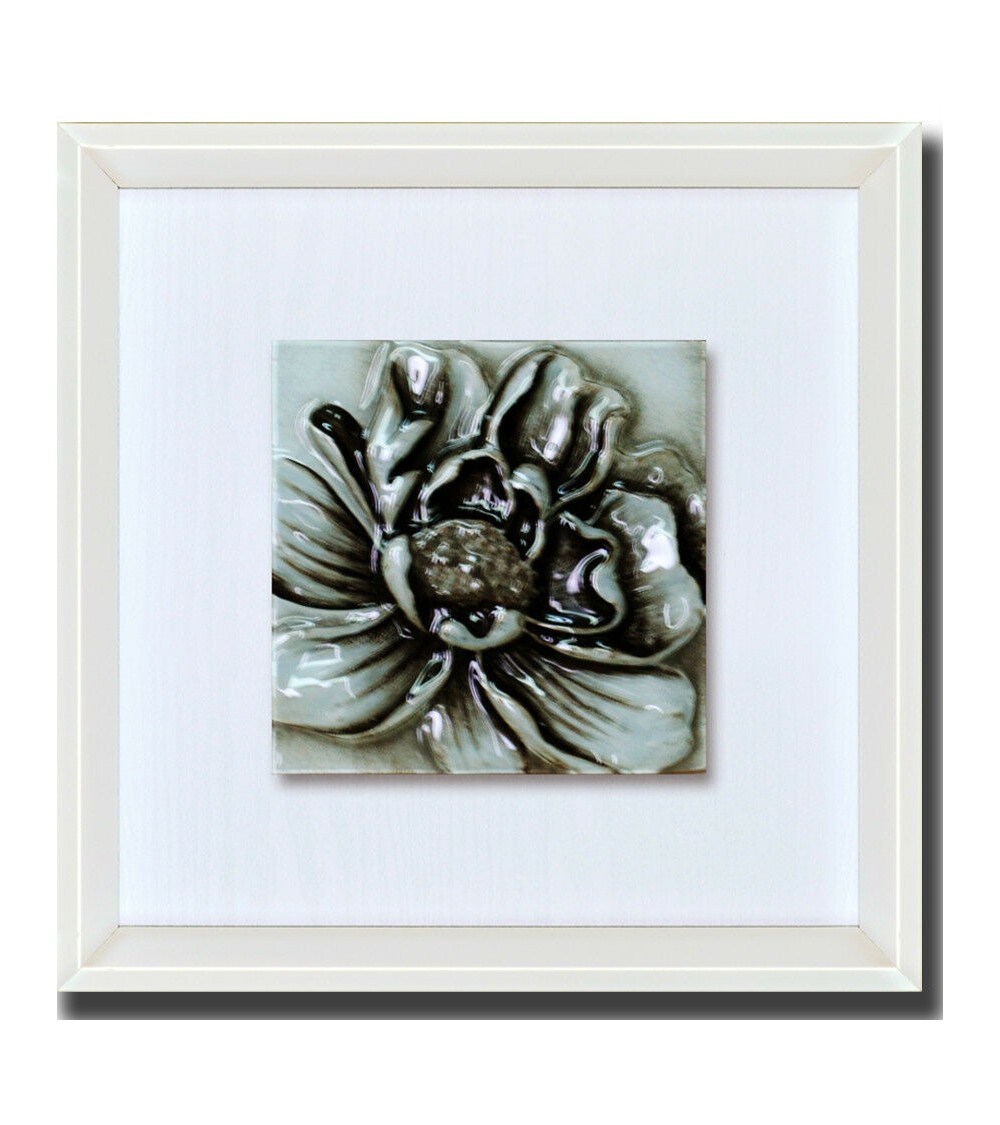 Quadro dipinto in rilievo fiore peonia moderno argento e beige con cornice inclusa bianca ST24007