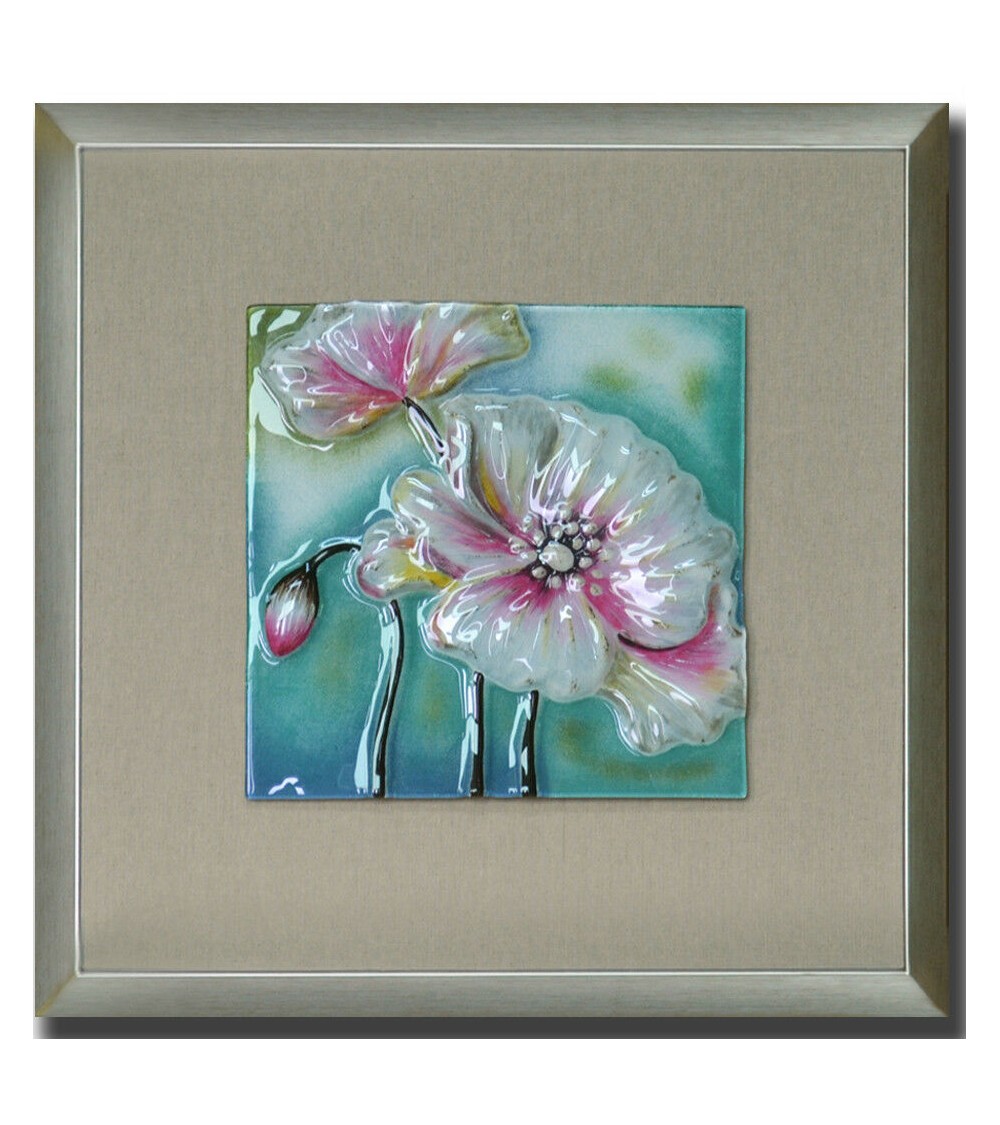 Quadro dipinto in rilievo fiore papaveri moderno beige con cornice inclusa ST24030