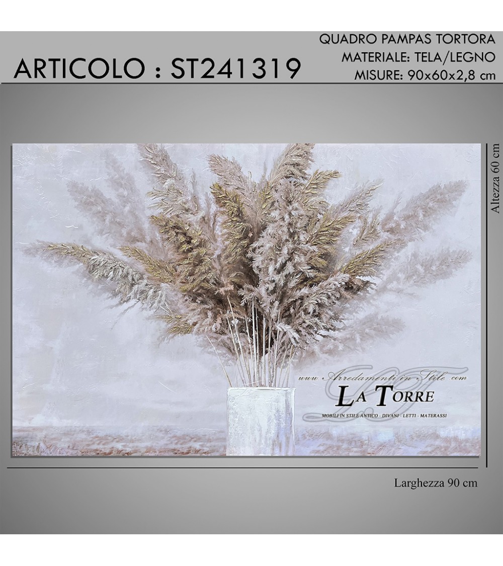Quadro dipinto su tela struttura in legno senza cornice fiori Pampas stile moderno Tortora ST241319