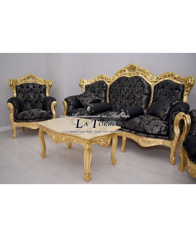 Divano Poltrona Germany tavolino salotto foglia Oro Barocco legno massello AL1242