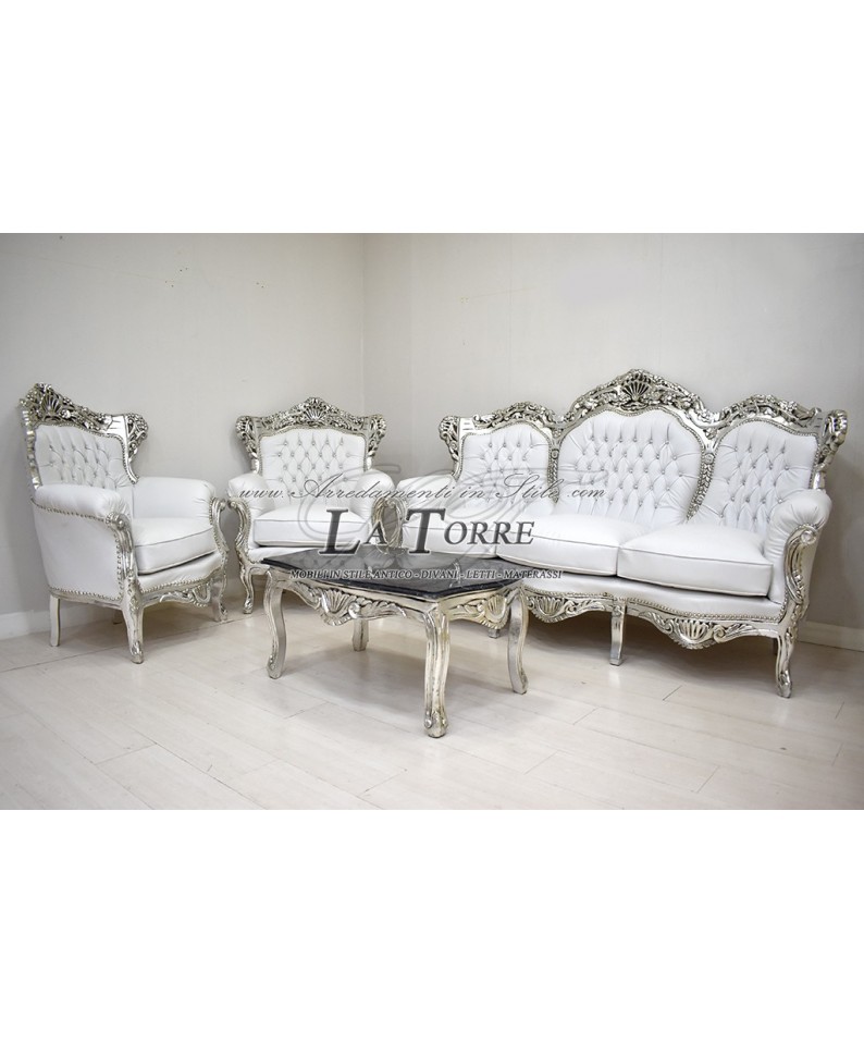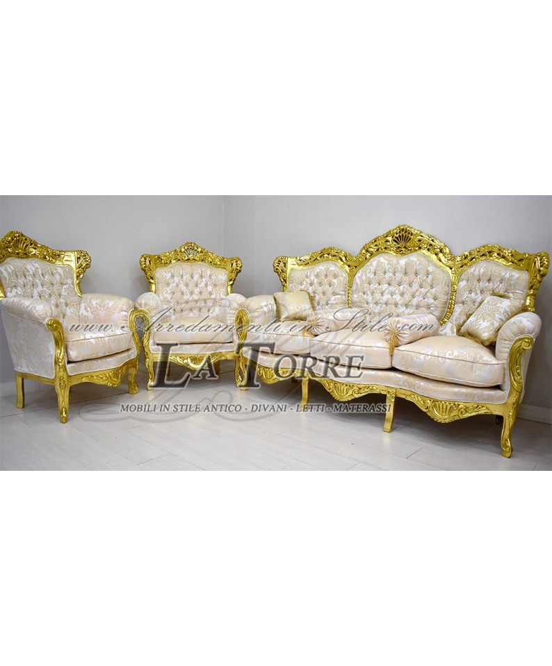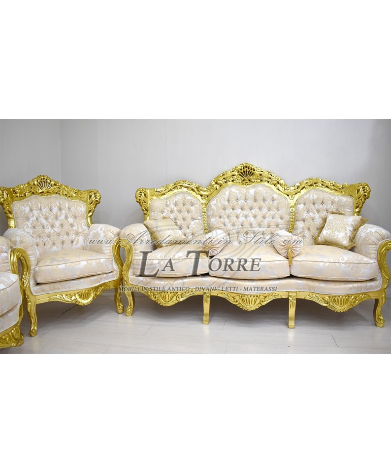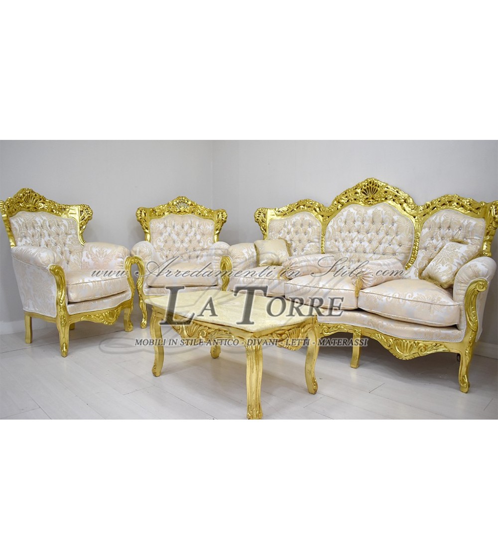 Divano Poltrona Germany Tavolino Salotto Foglia Oro Barocco legno massello AL1242