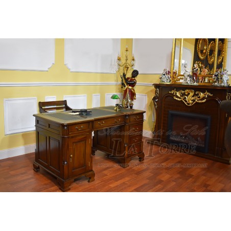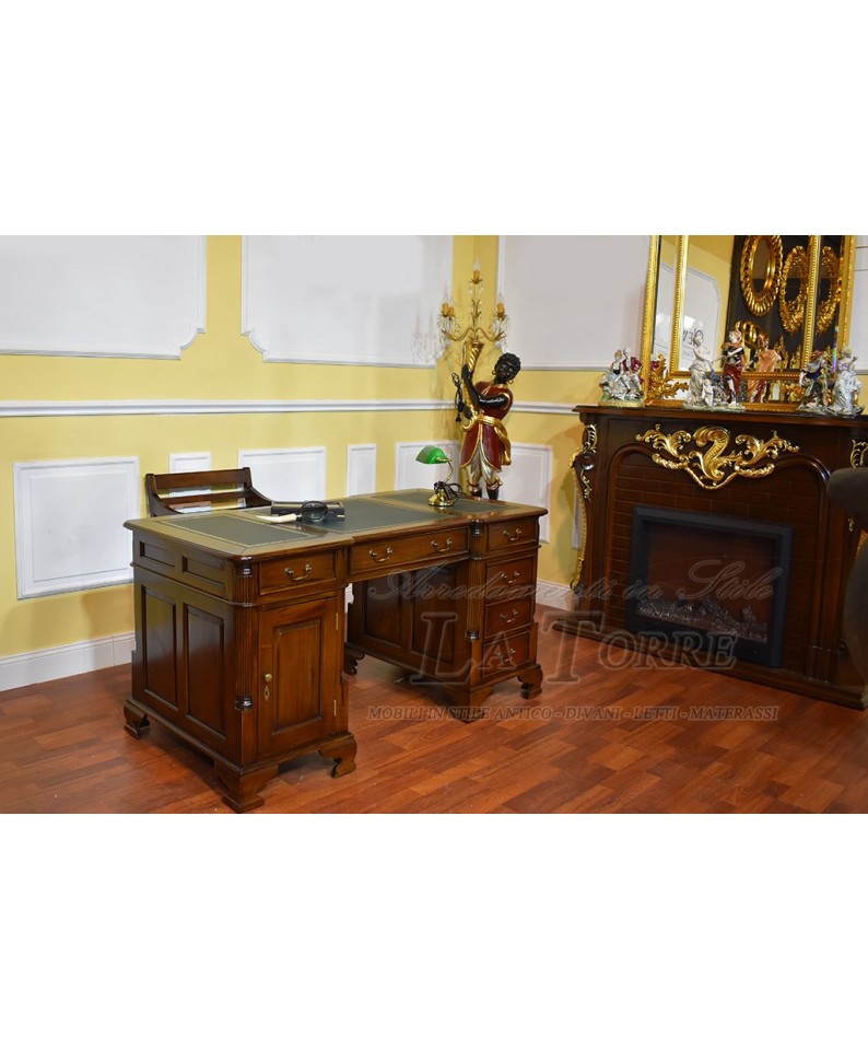 Scrivania Scrittoio Ministeriale Presidenziale Bifacciale Noce Ecopelle Verde130 NA07