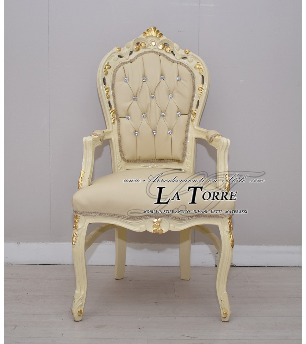 Sedia Poltrona Still Luigi XV Barocco Impero avorio oro ecopelle AL2729