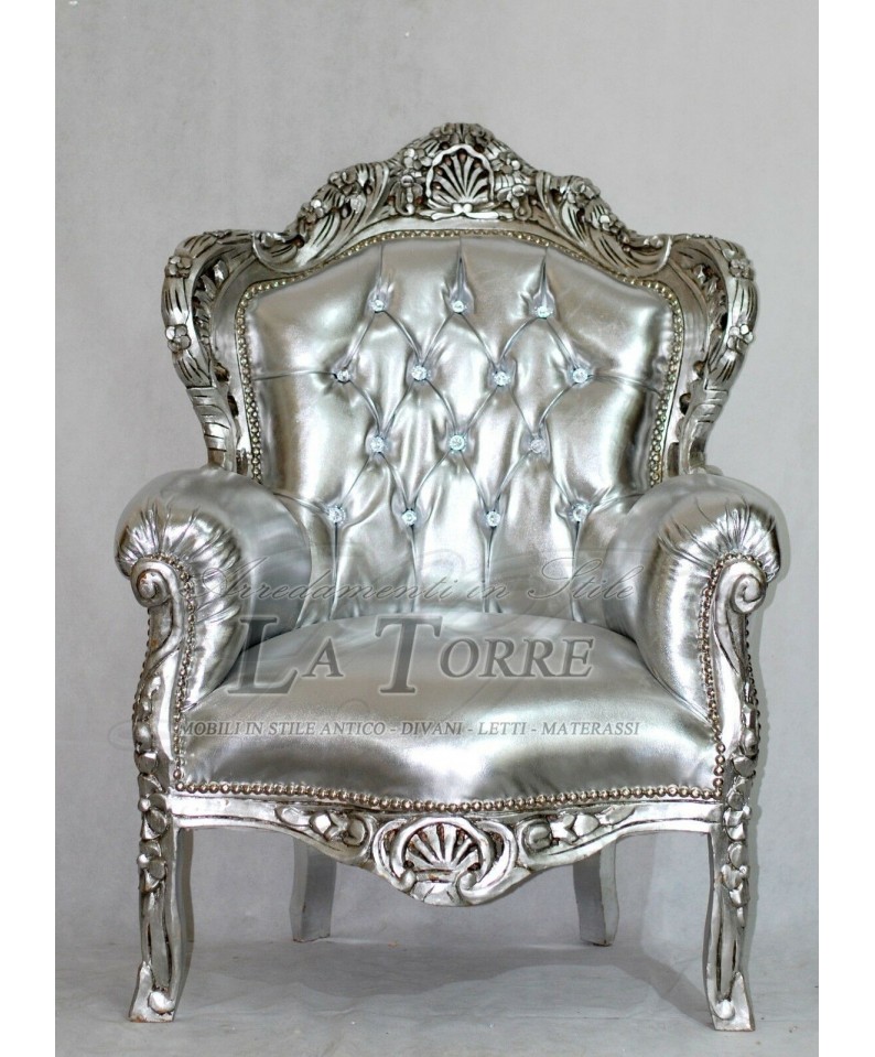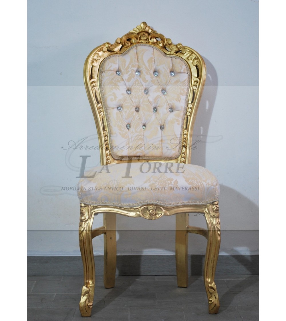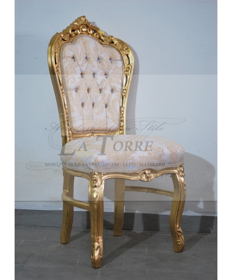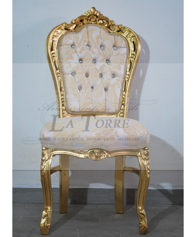 Sedia Poltrona Still Luigi XV Barocco Impero oro tessuto damascato giglio AL1826