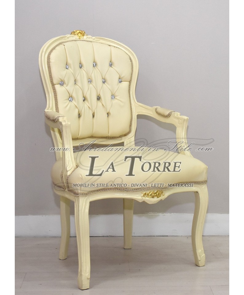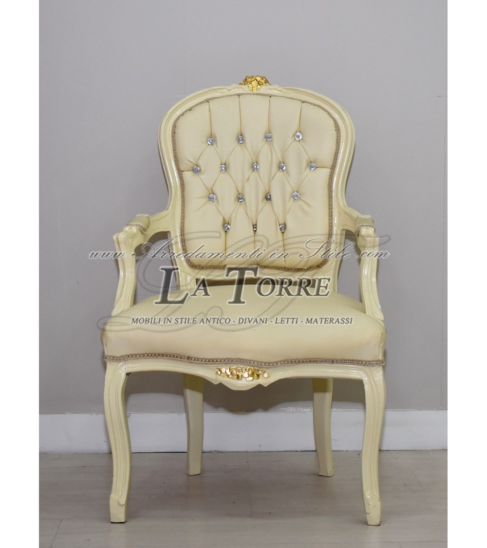 Poltrona futè sedia braccioli Luigi XV avorio oro ecopelle champagne barocco AR1114