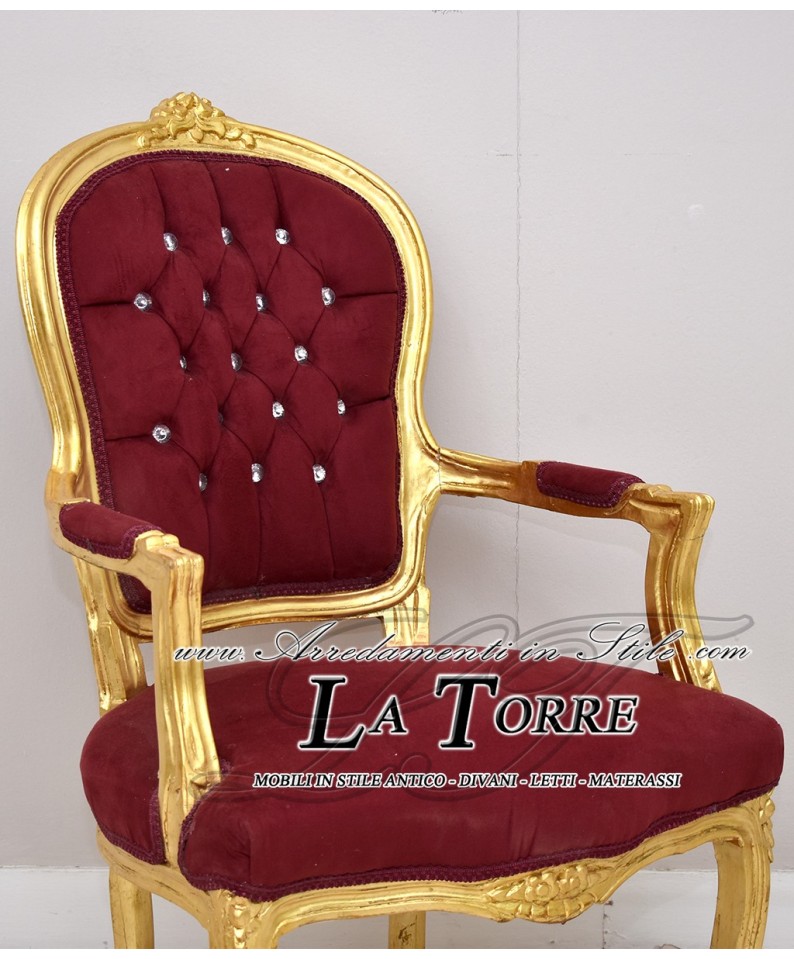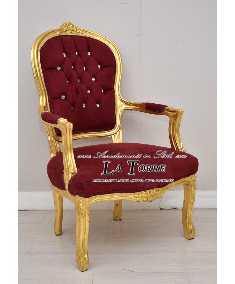 Poltrona futè sedia braccioli Luigi XV oro vellutino bordeaux barocco AR1114