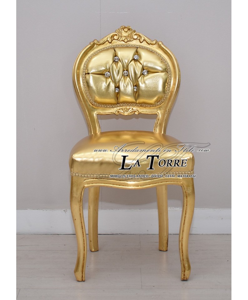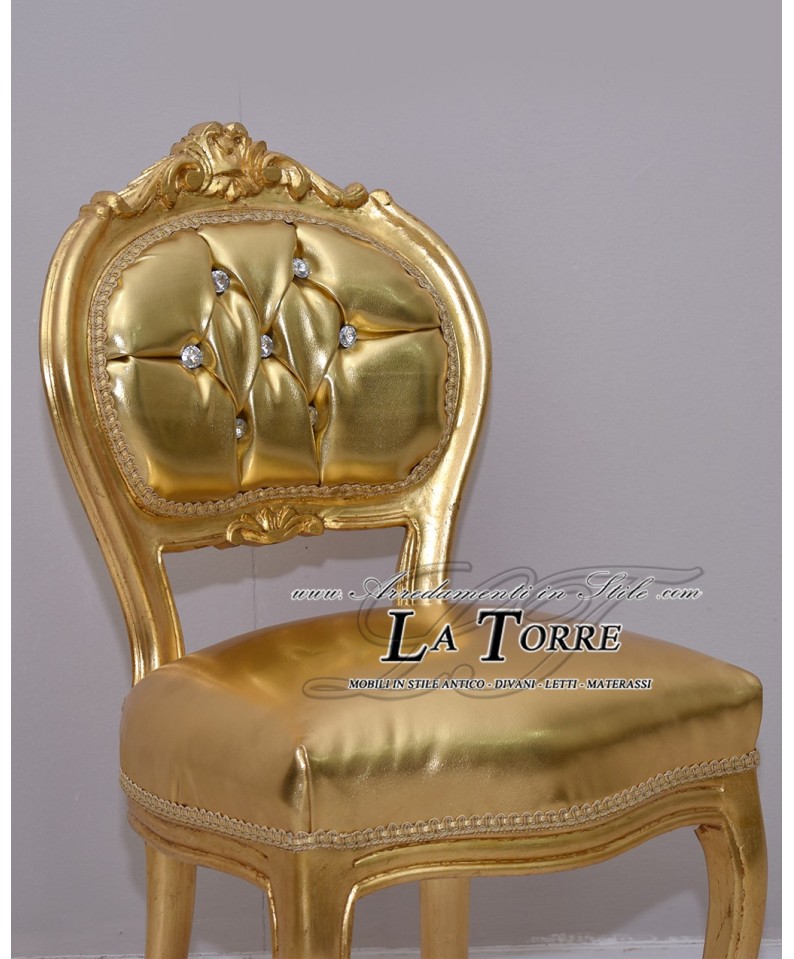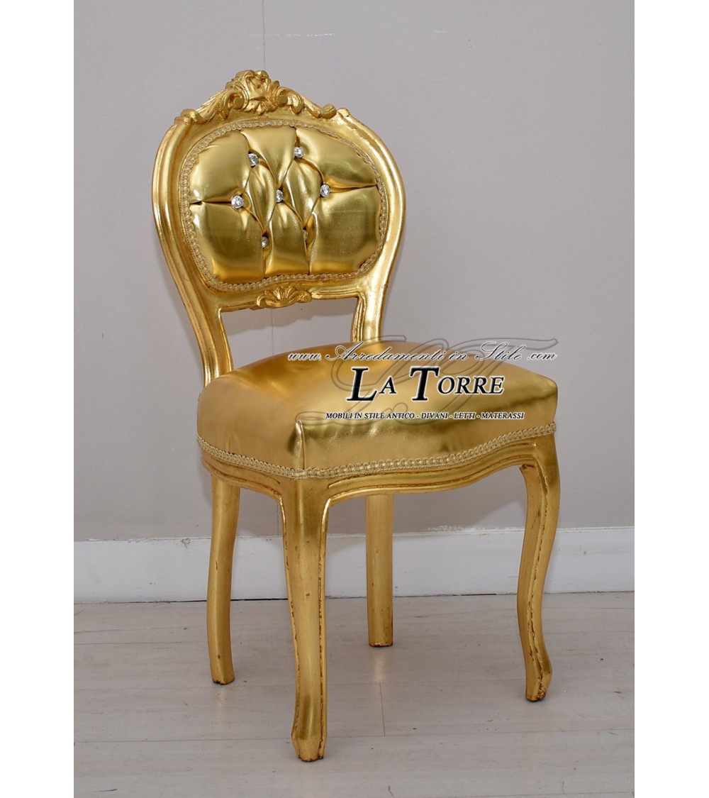 Sediolina luigi XV sedia musica legno massello foglia oro ecopelle oro k90