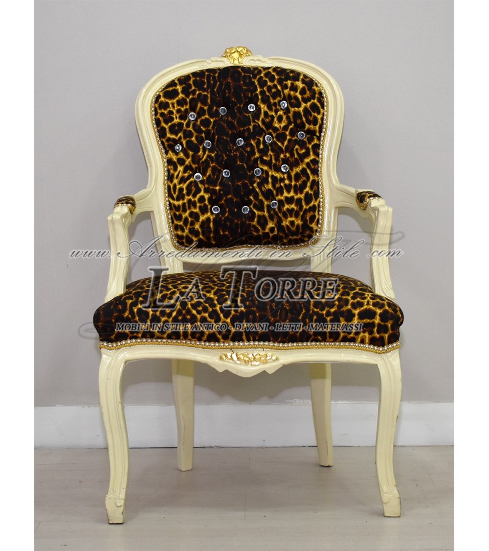 Poltrona futè sedia braccioli Luigi XV avorio velluto leopardato barocco AR1114