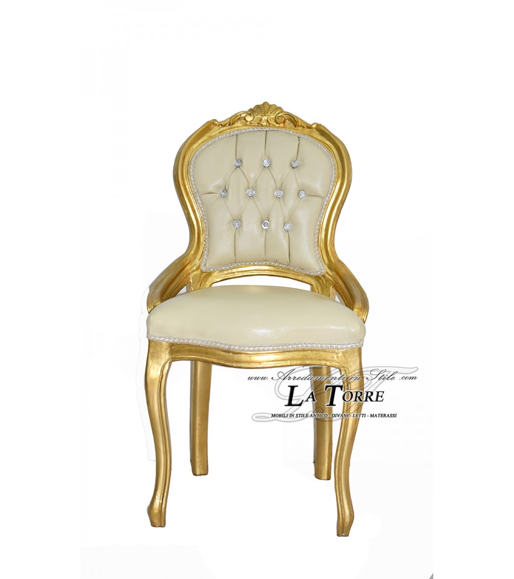 Sediolina Luigi XV Sedia Legno oro Ecopelle champagne Swarovski AR012