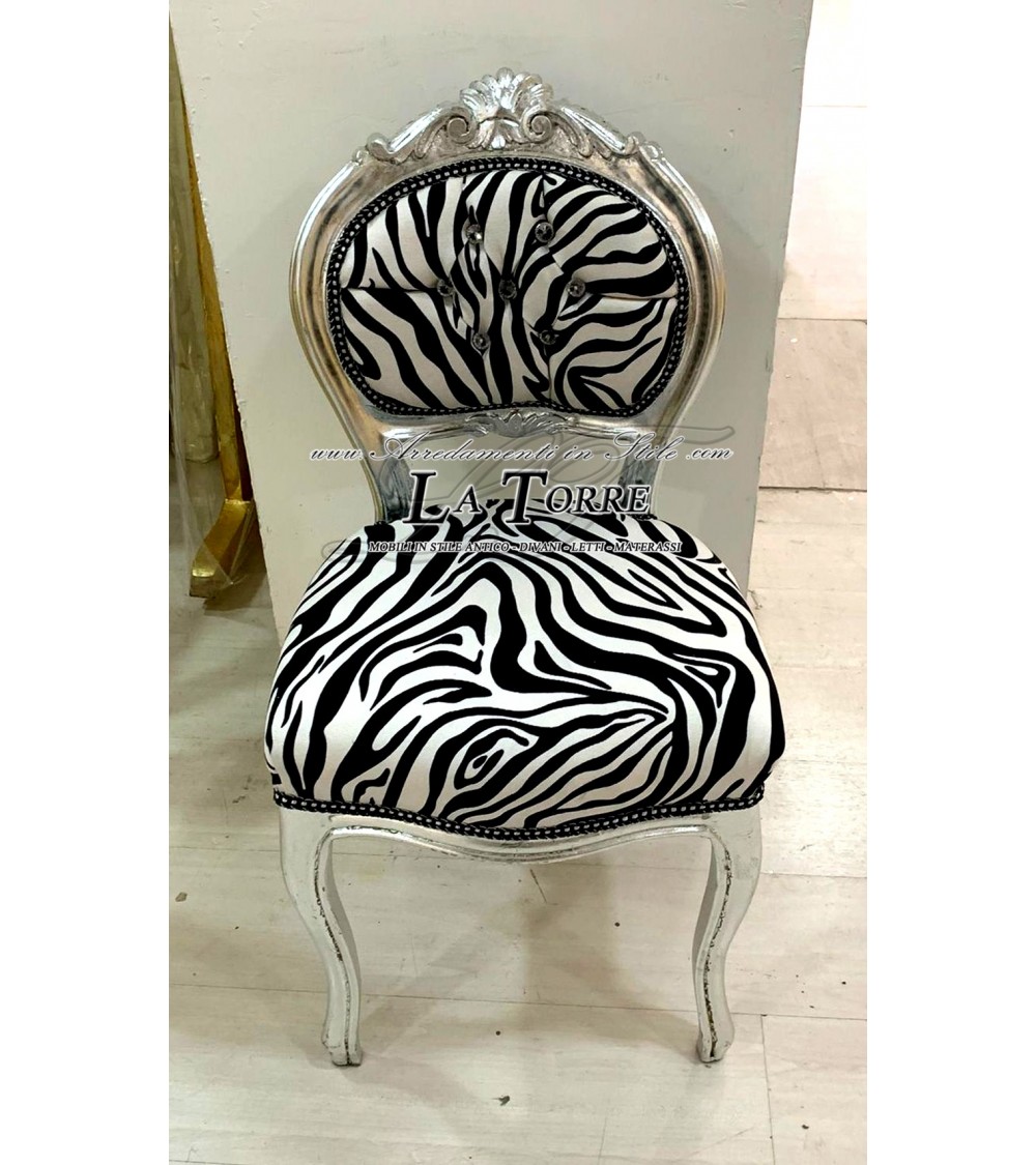Sediolina luigi XV sedia musica legno massello foglia argento tessuto zebrato K90