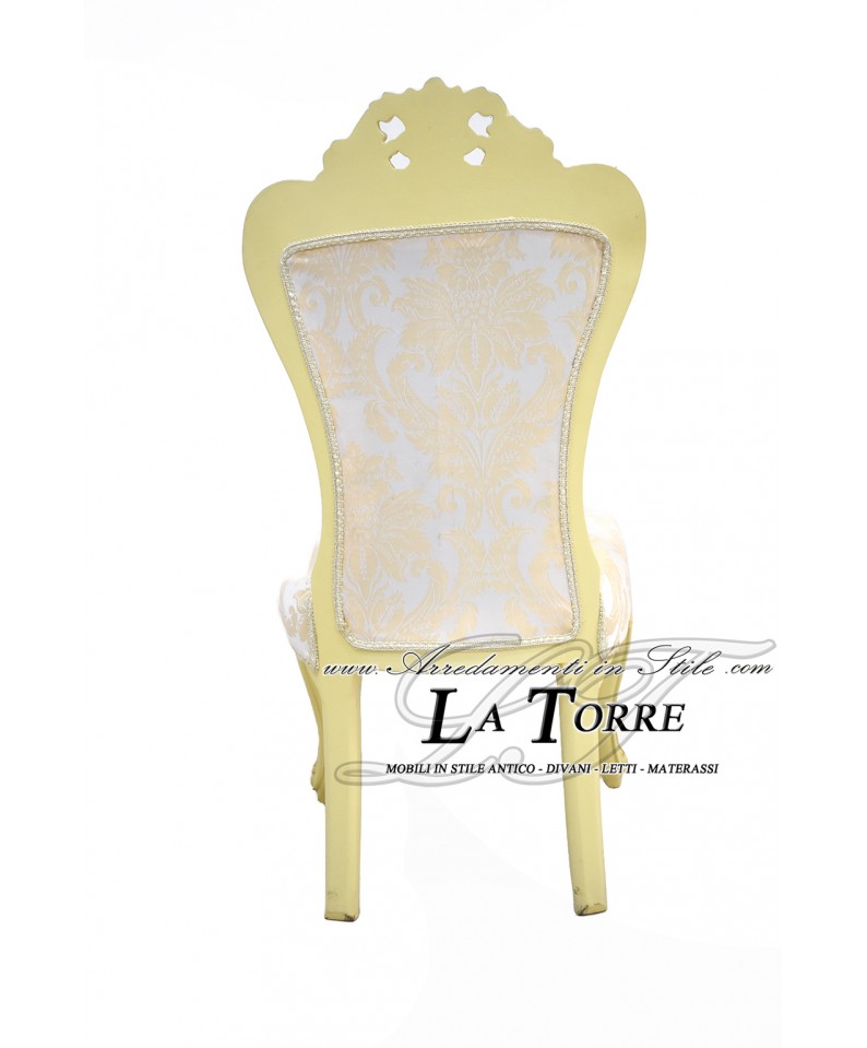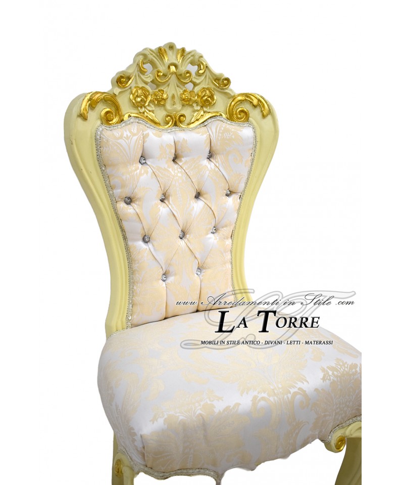 Sedia Poltrona Carmen Luigi XV Barocco Impero avorio e oro tessuto damascato beige MA5054