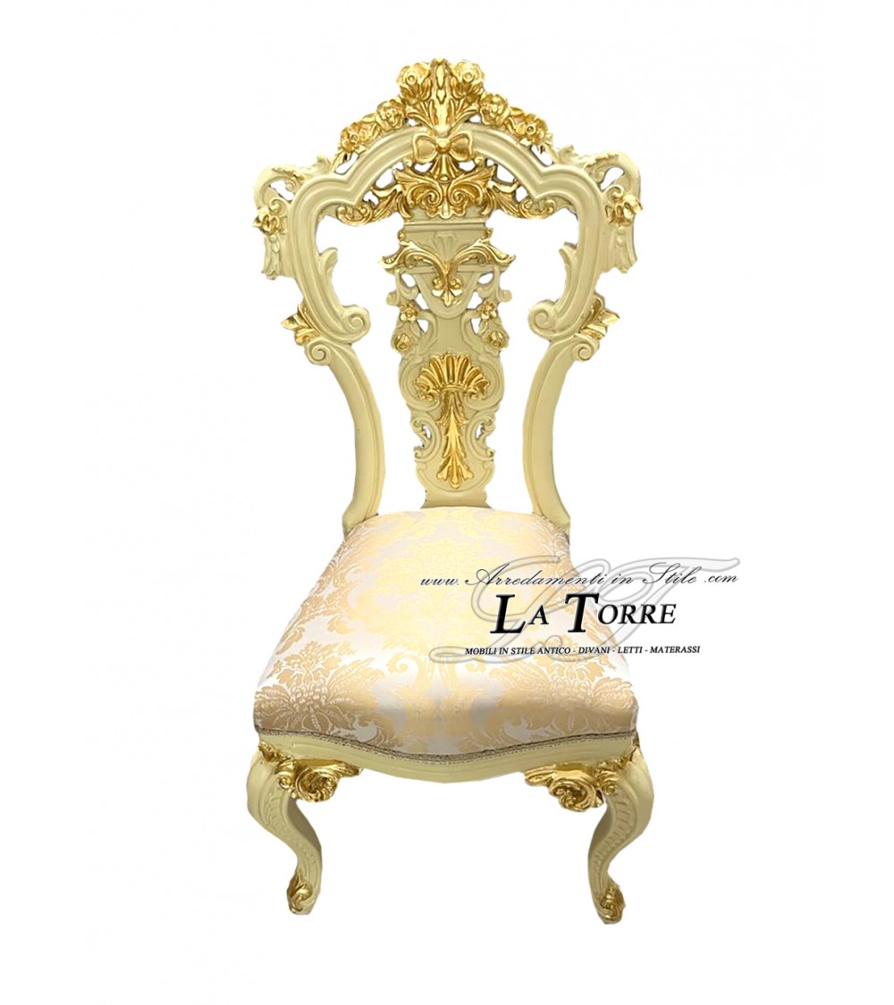 Sedia Poltrona Luigi XV Barocco Impero avorio oro ecopelle damascato LT3045