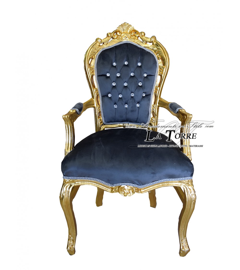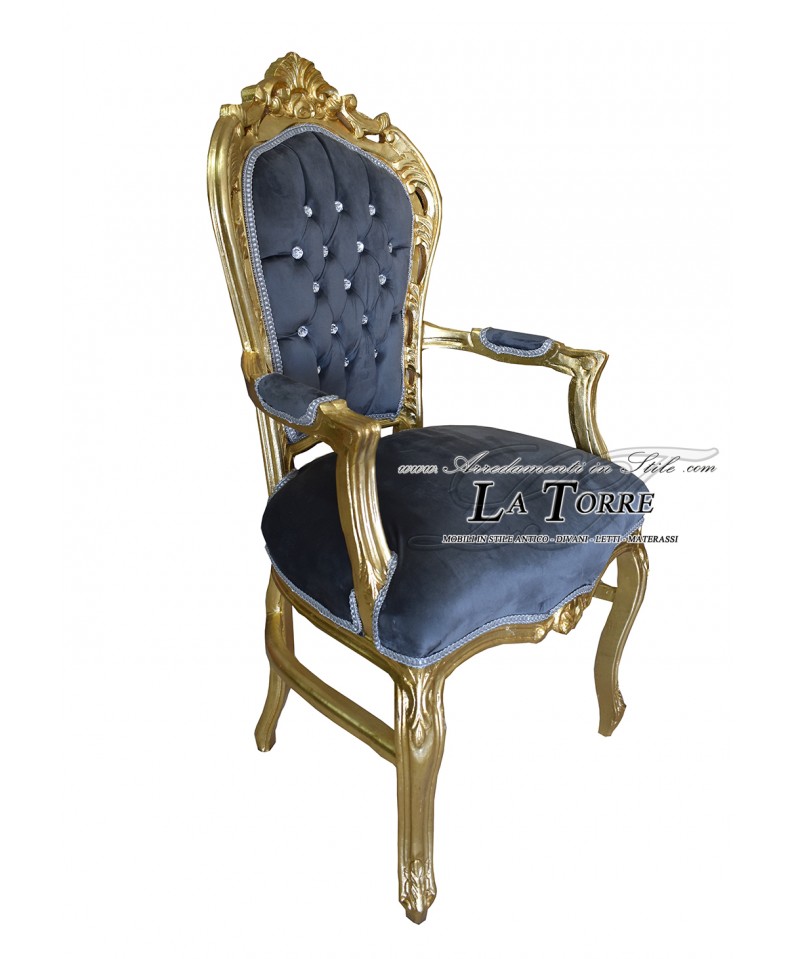 Sedia Poltrona Still Luigi XV Barocco Impero oro vellutino grigio AL2729